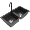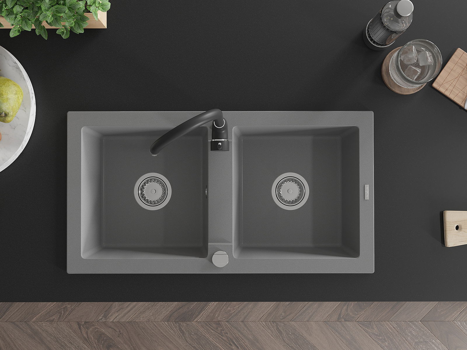Mexen Mario zlewozmywak granitowy 2-komorowy z baterią kuchenną Telma, szary - 6504-71-670200-70