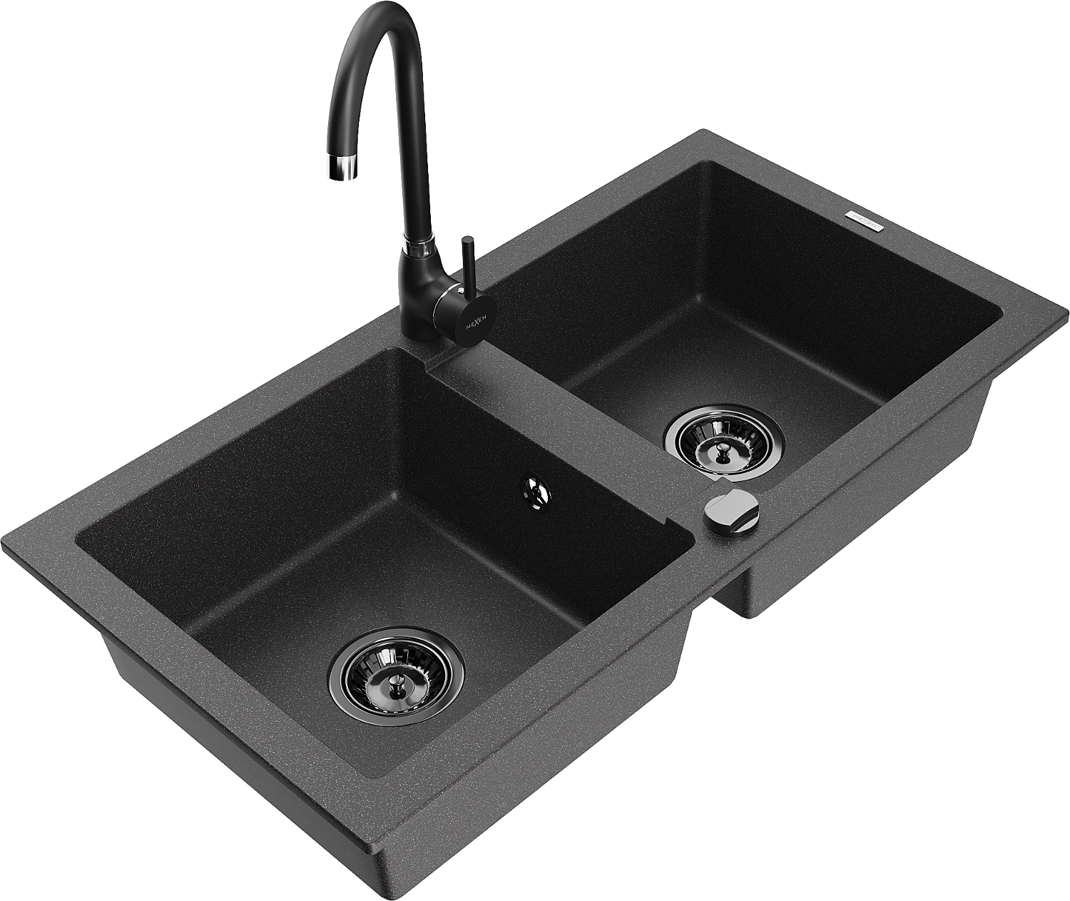 Mexen Mario zlewozmywak granitowy 2-komorowy z baterią kuchenną Telma, czarny nakrapiany - 6504-76-670200-70-B