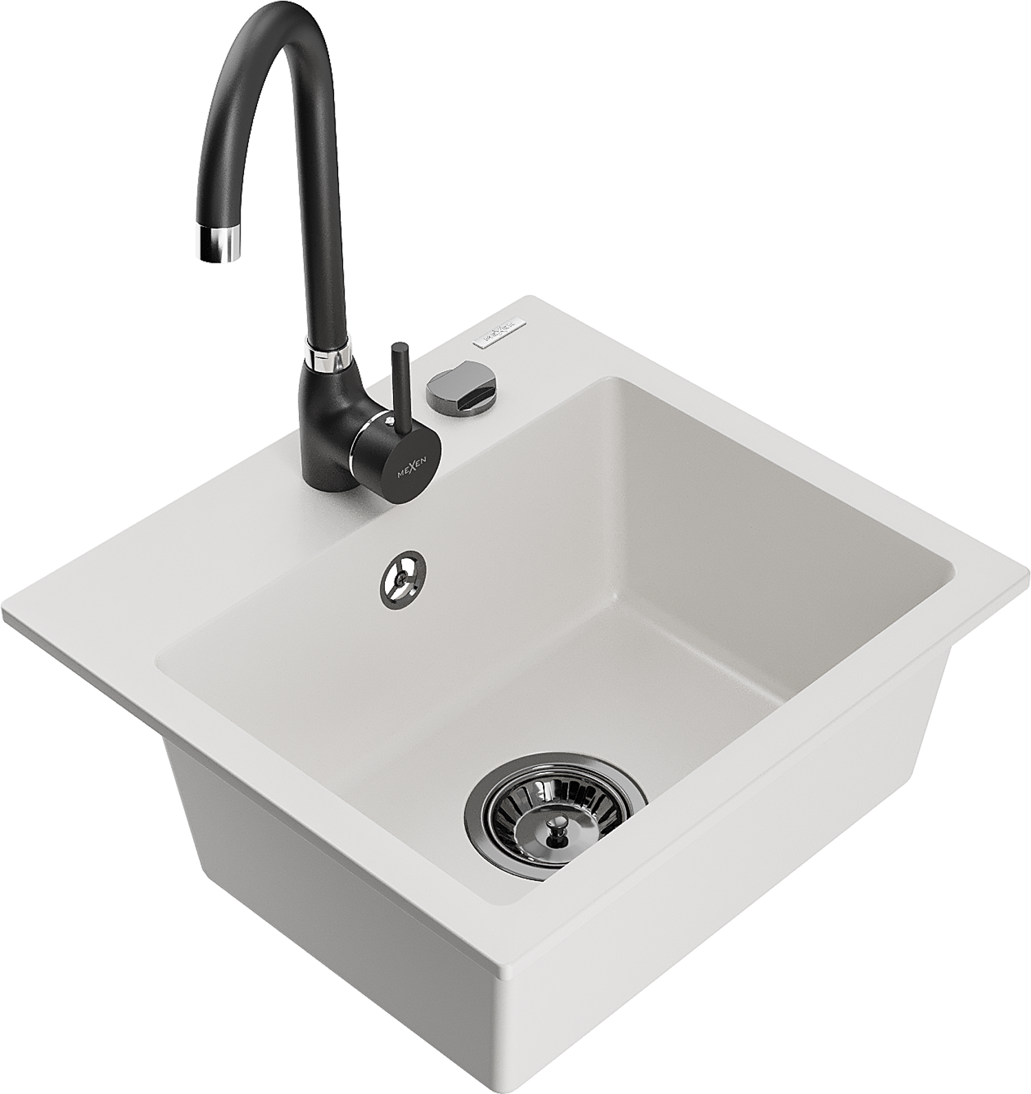 Mexen Milo zlewozmywak granitowy 1-komorowy z baterią kuchenną Telma, biały - 6505-20-670200-70