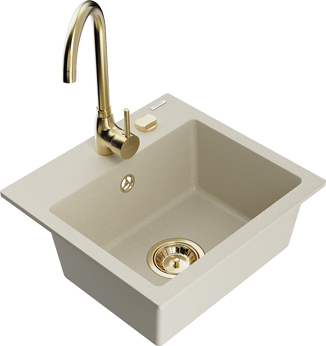 Mexen Milo zlewozmywak granitowy 1-komorowy z baterią kuchenną Telma, beżowy - 6505-69-670200-50