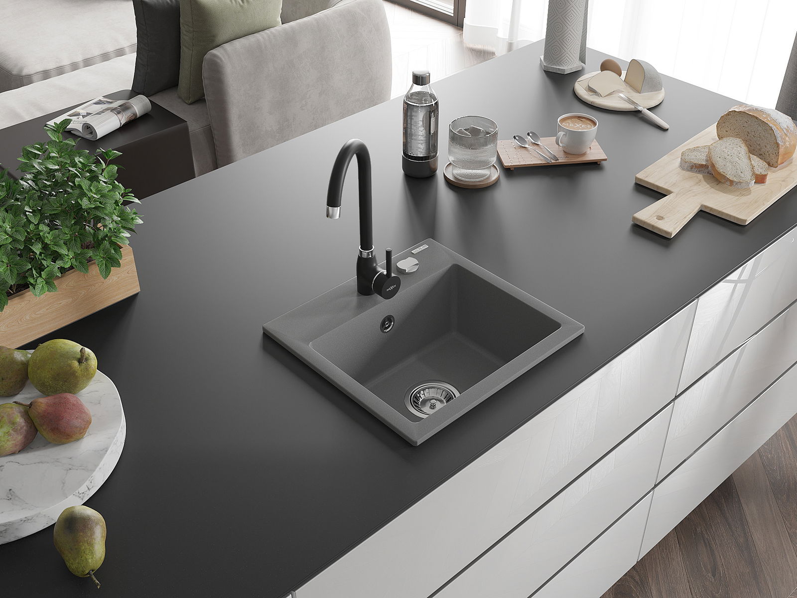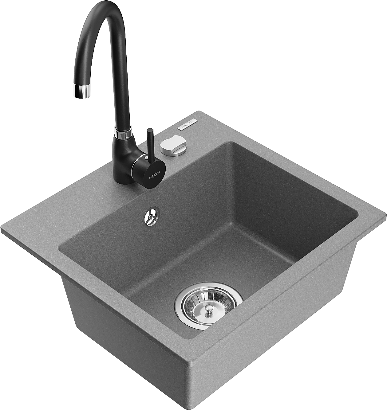Mexen Milo zlewozmywak granitowy 1-komorowy z baterią kuchenną Telma, szary - 6505-71-670200-70