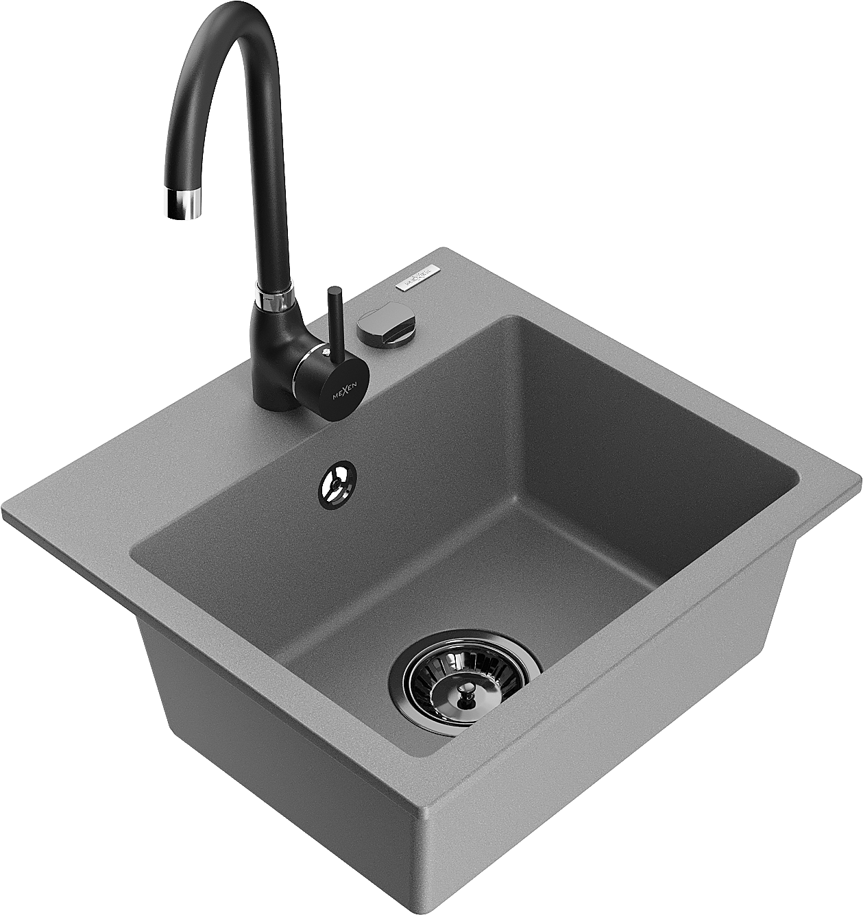 Mexen Milo zlewozmywak granitowy 1-komorowy z baterią kuchenną Telma, szary - 6505-71-670200-70-B