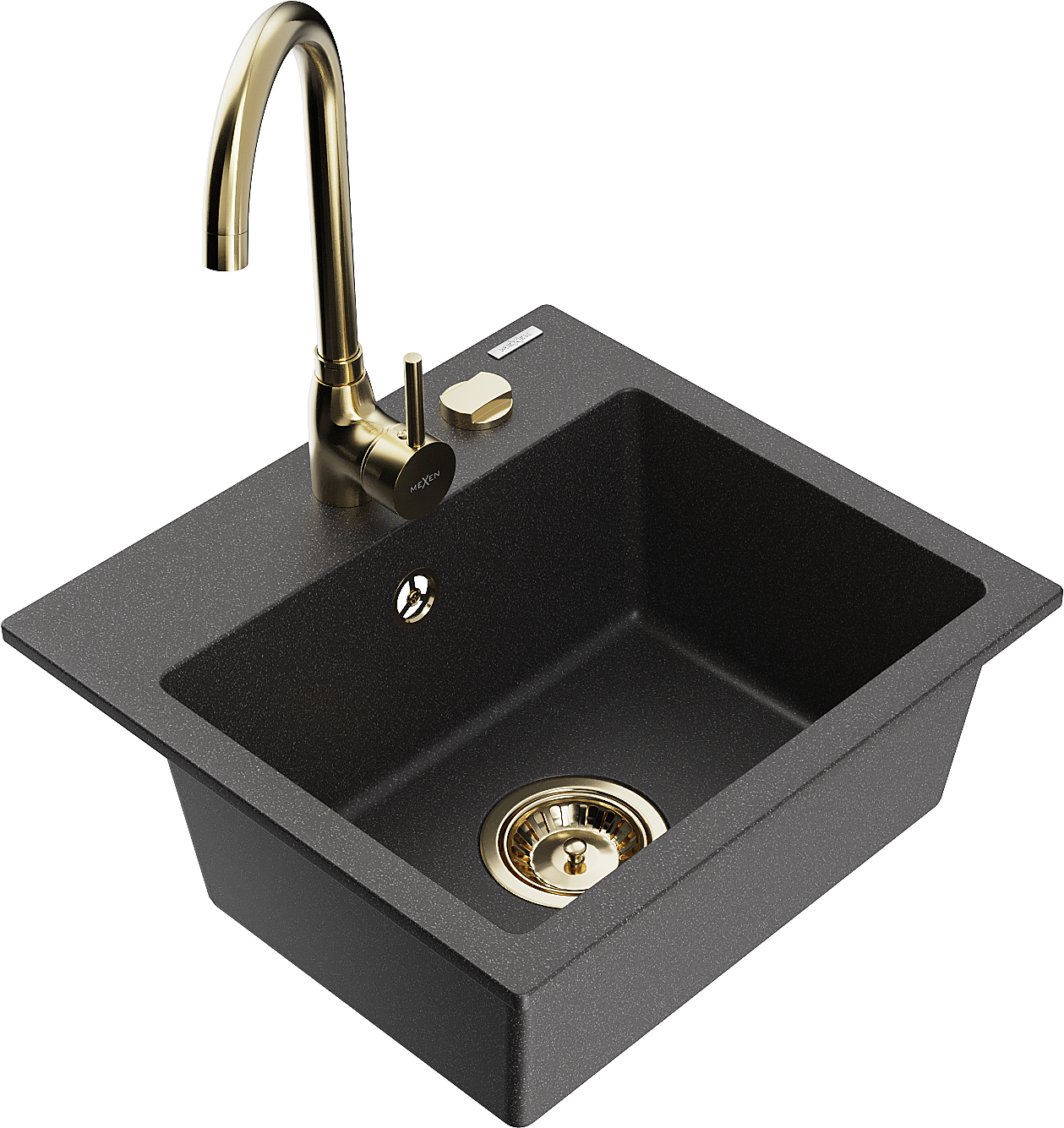 Mexen Milo zlewozmywak granitowy 1-komorowy z baterią kuchenną Telma, czarny nakrapiany - 6505-76-670200-50