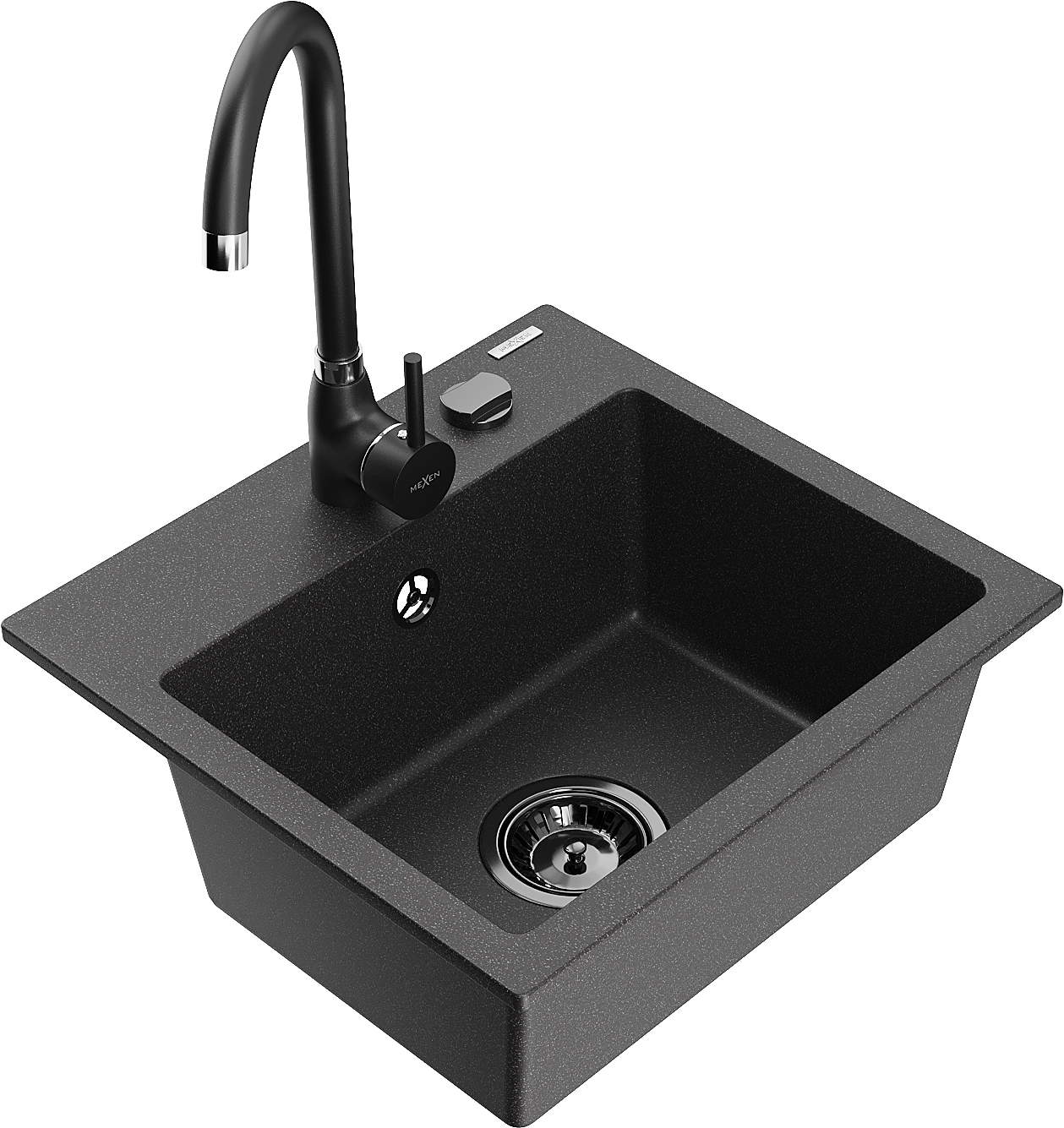 Mexen Milo zlewozmywak granitowy 1-komorowy z baterią kuchenną Telma, czarny nakrapiany - 66505-76-670200-70-B