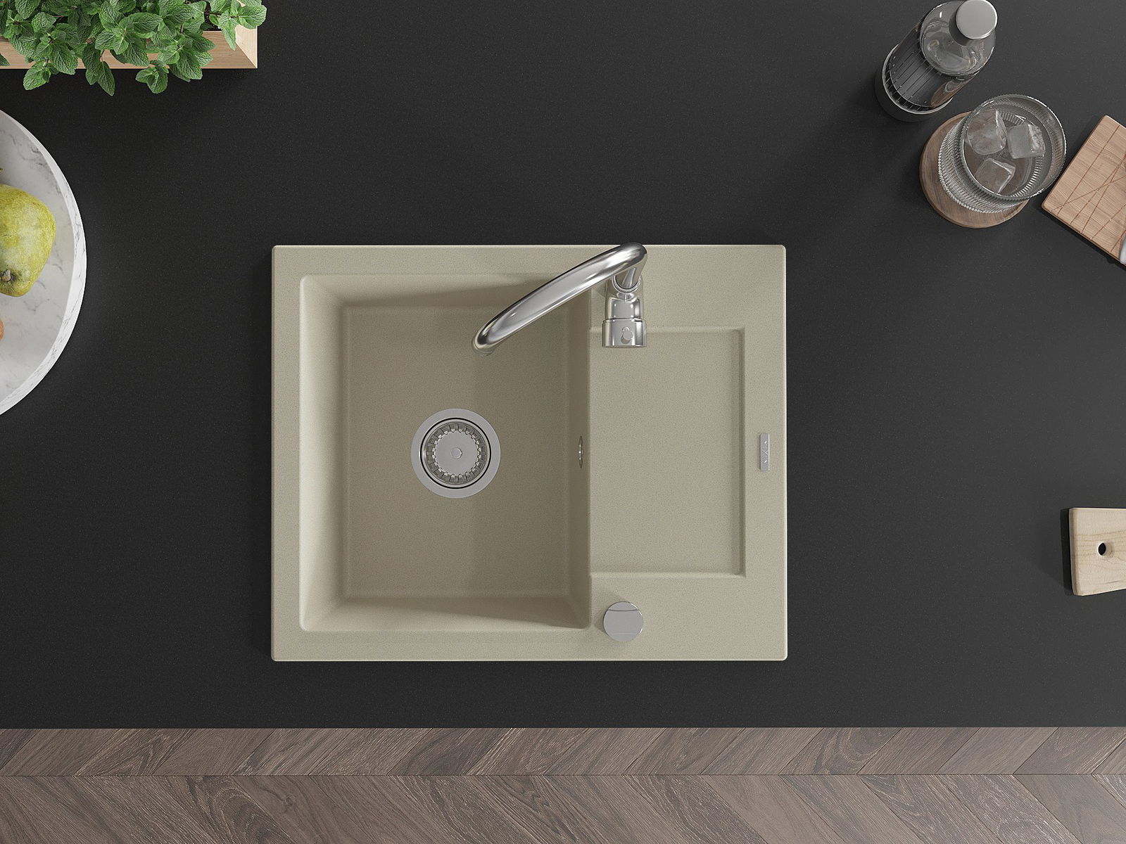 Mexen Enzo zlewozmywak granitowy 1-komorowy z ociekaczem i baterią kuchenną Telma, beżowy - 6506-69-670200-00