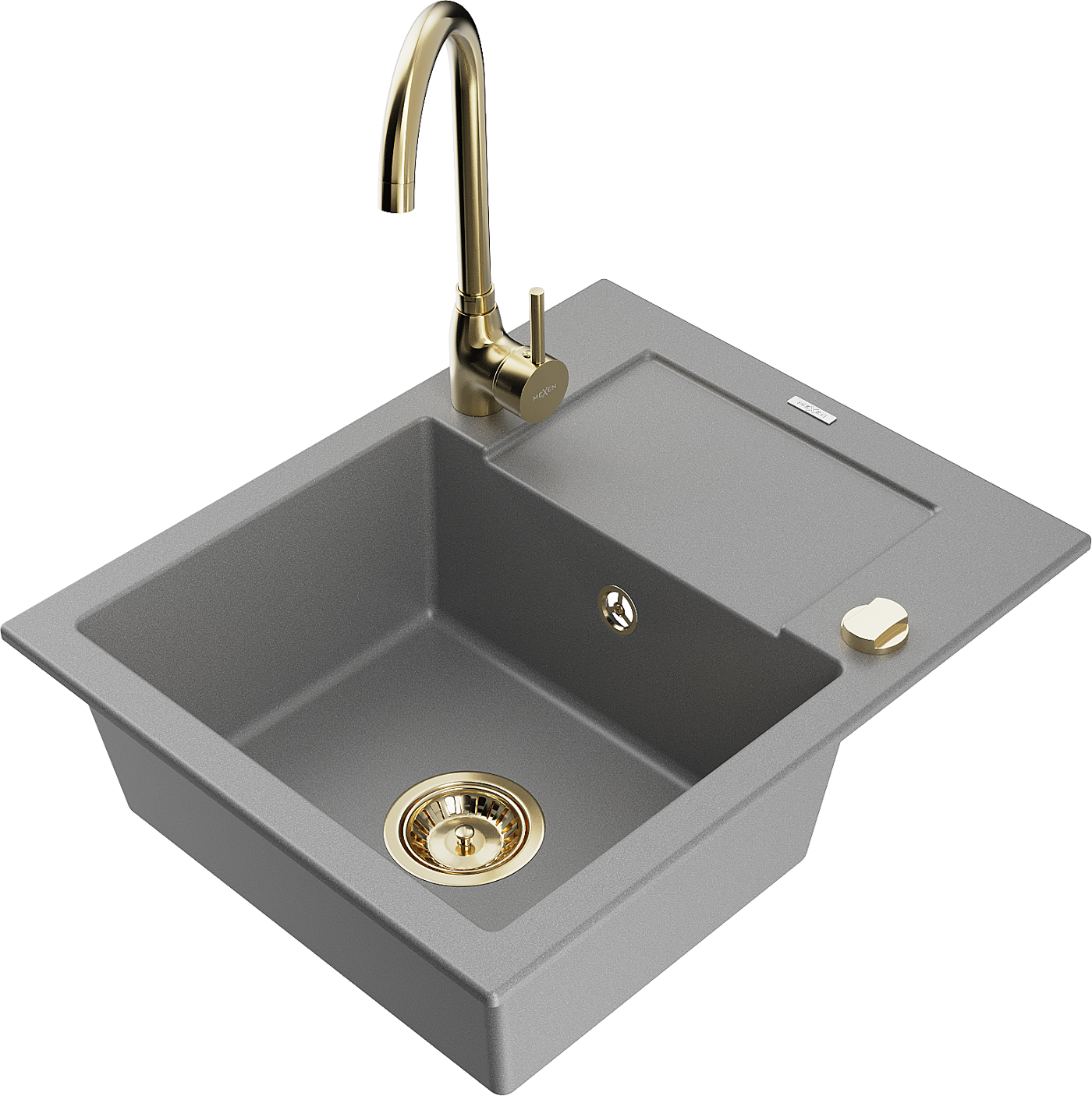 Mexen Enzo zlewozmywak granitowy 1-komorowy z ociekaczem i baterią kuchenną Telma, szary - 6506-71-670200-50
