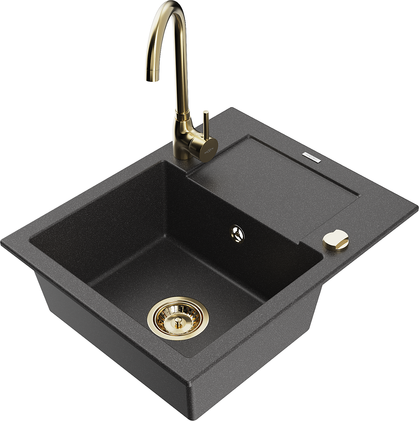 Mexen Enzo zlewozmywak granitowy 1-komorowy z ociekaczem i baterią kuchenną Telma, czarny nakrapiany - 6506-76-670200-50