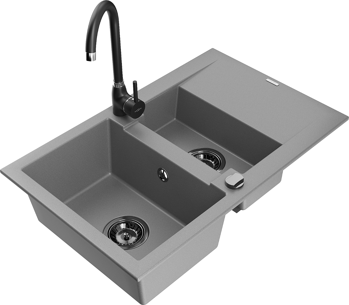 Mexen Gaspar zlewozmywak granitowy 1,5-komorowy z ociekaczem i baterią kuchenną Telma, szary - 6507-71-670200-70-B