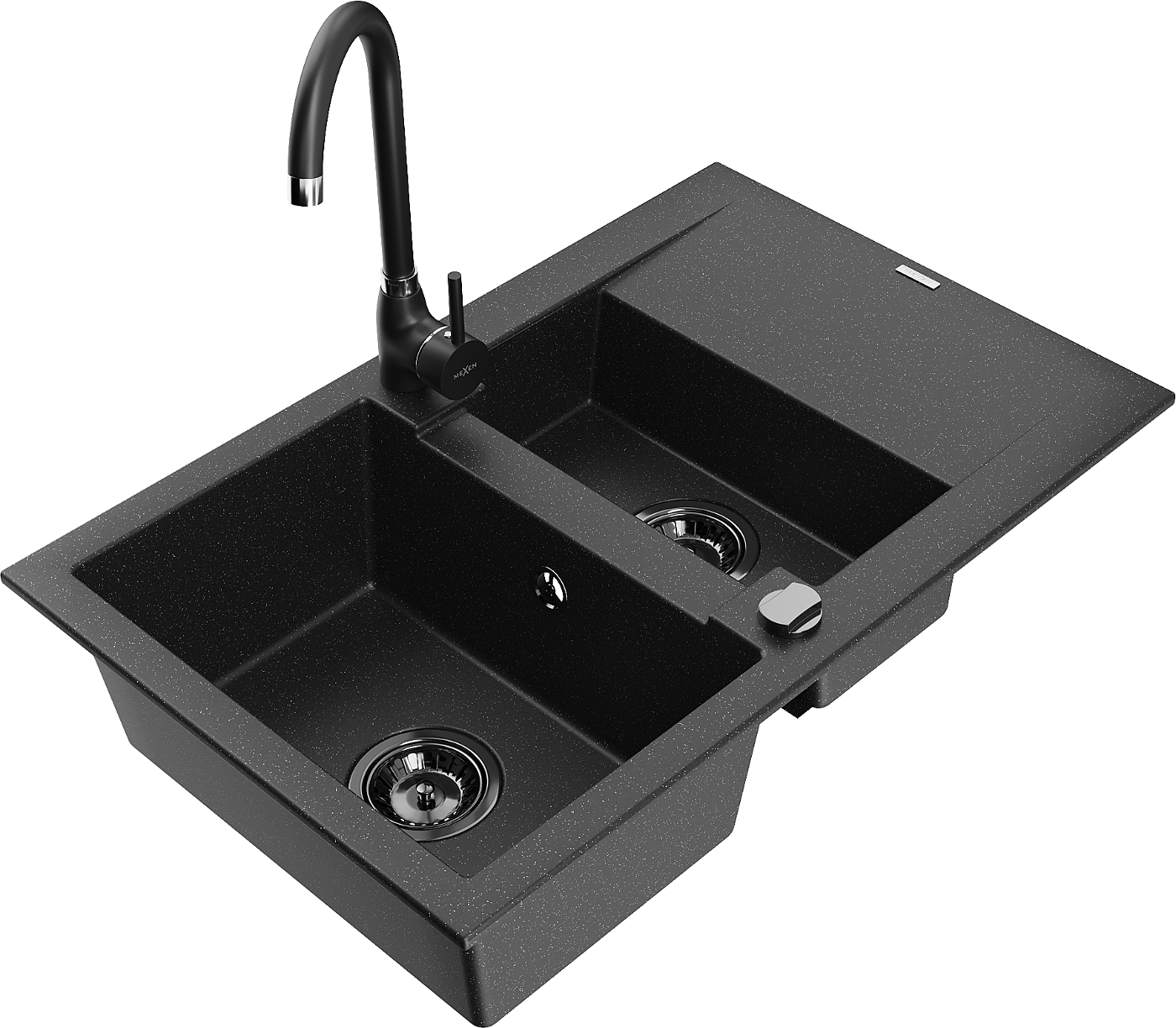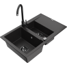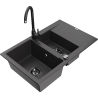 Mexen Gaspar zlewozmywak granitowy 1,5-komorowy z ociekaczem i baterią kuchenną Telma, czarny/srebrny - 6507-73-670200-70-B