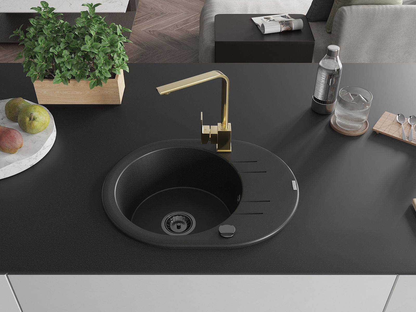 Zlewozmywak został wykonany z wysokiej jakości granitu. Stanowi eleganckie, a przede wszystkim praktyczne uzupełnienie każdej kuchni, niezależnie od jej stylu. Wysoka jakość oraz trwałość granitu zapewniają wieloletnie użytkowanie.