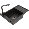 Mexen Elias zlewozmywak granitowy 1-komorowy z ociekaczem i baterią kuchenną Duero, czarny - 6511-77-671600-70-B