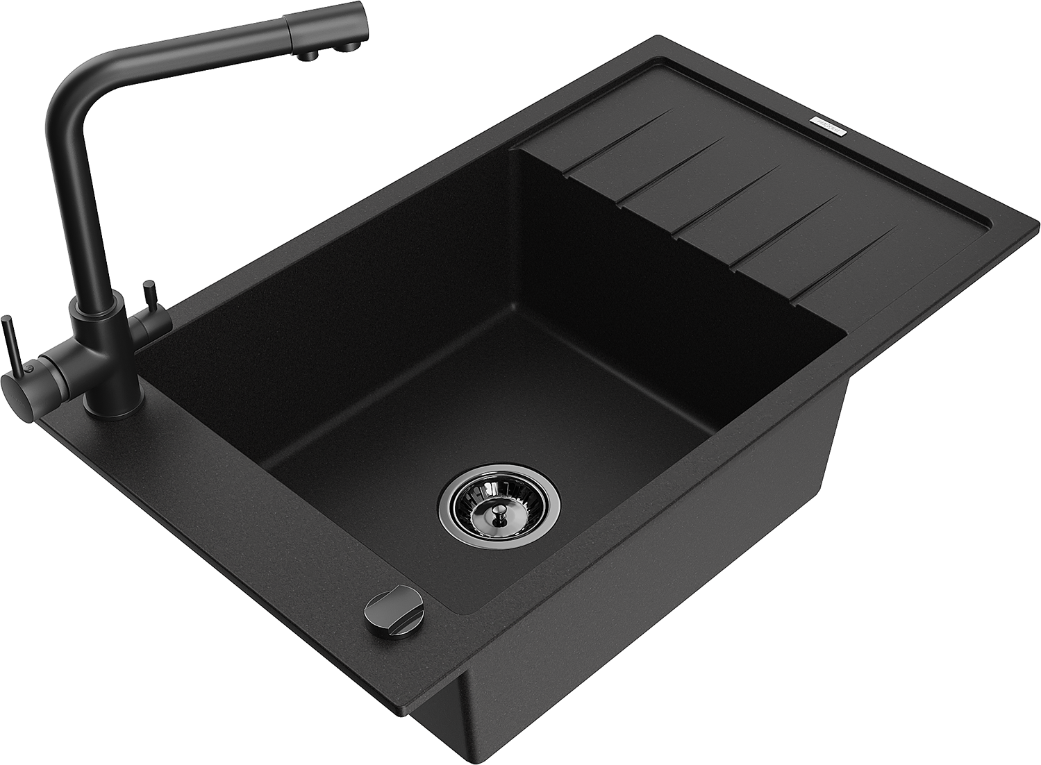 Zlewozmywak został wykonany z wysokiej jakości granitu. Stanowi eleganckie, a przede wszystkim praktyczne uzupełnienie każdej kuchni, niezależnie od jej stylu. Wysoka jakość oraz trwałość granitu zapewniają wieloletnie użytkowanie.