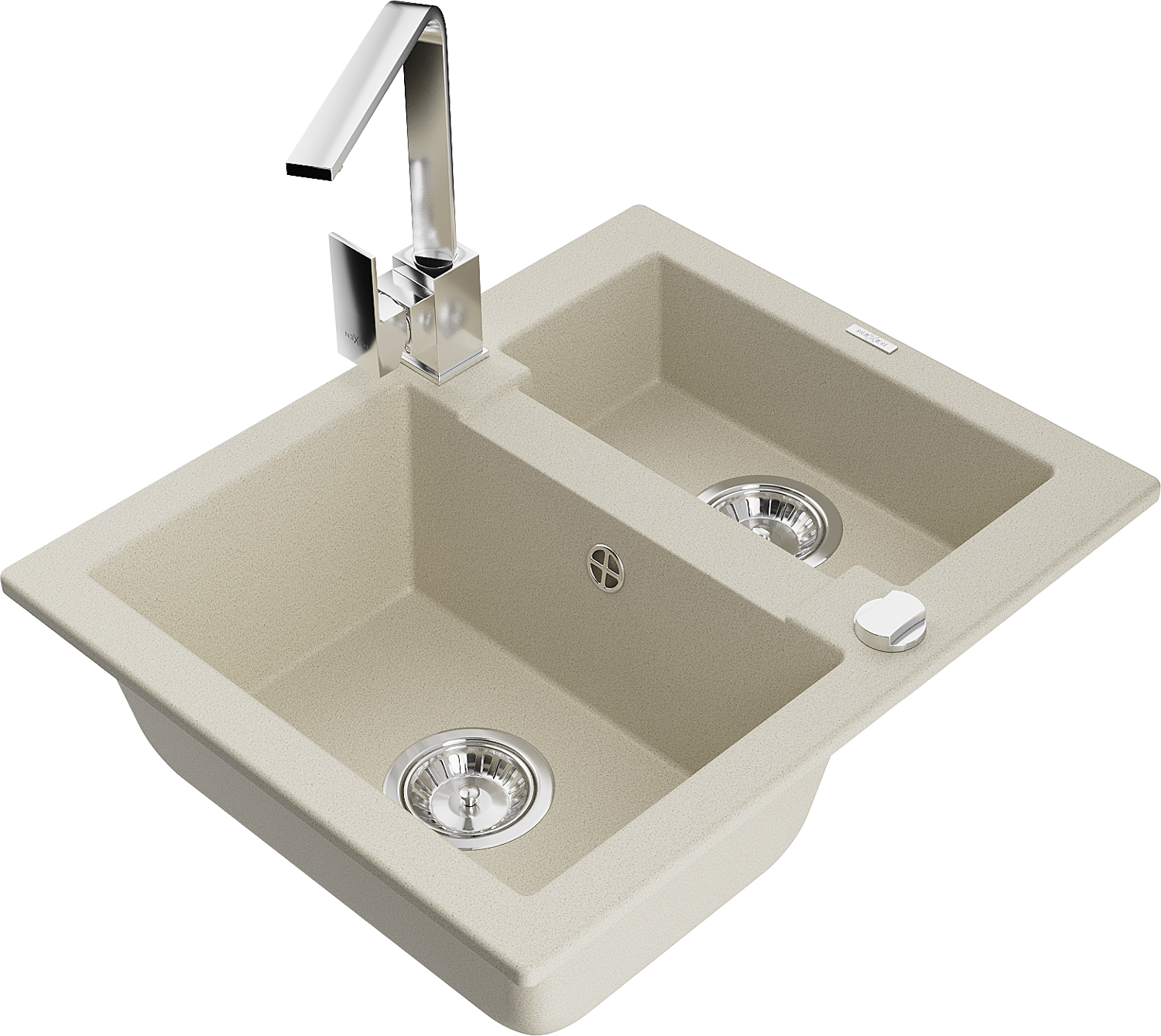 Mexen Carlos zlewozmywak granitowy 1,5-komorowy z baterią kuchenną Rita, beżowy - 6518-69-670300-00