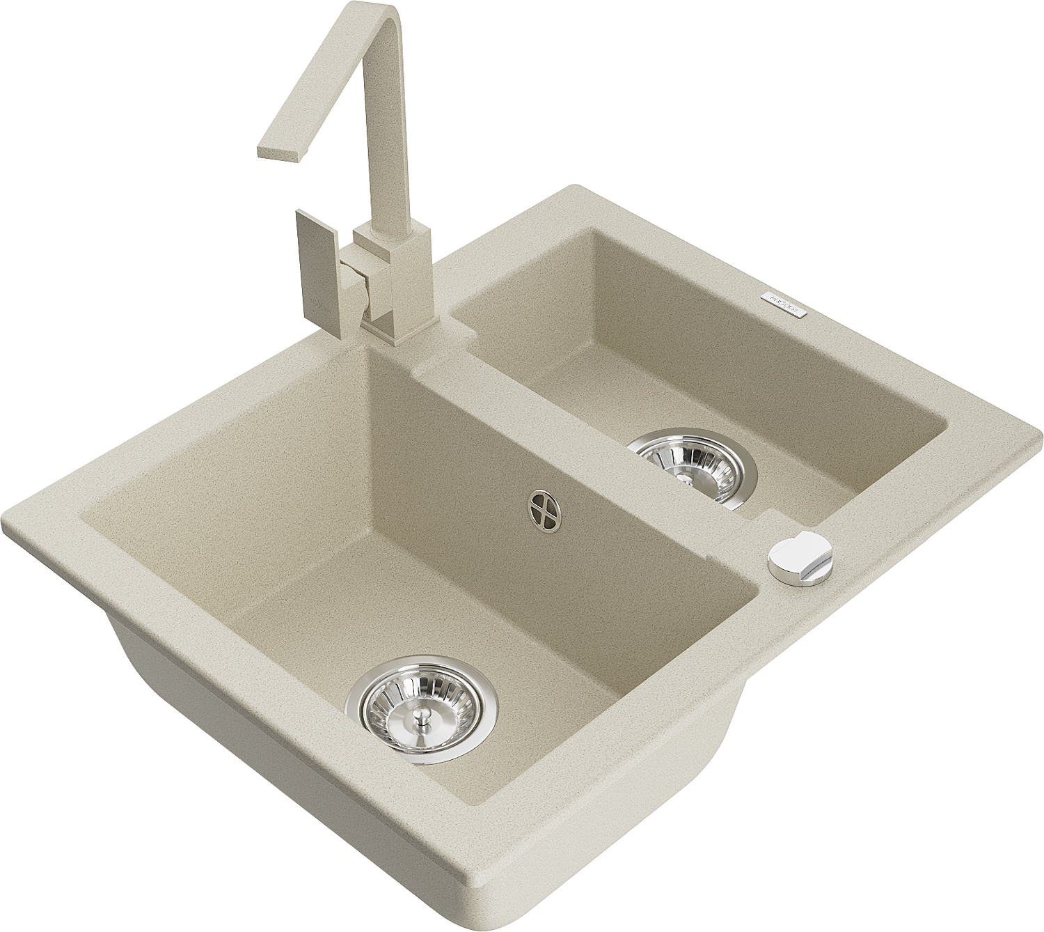 Mexen Carlos zlewozmywak granitowy 1,5-komorowy z baterią kuchenną Rita, beżowy - 6518-69-670300-69