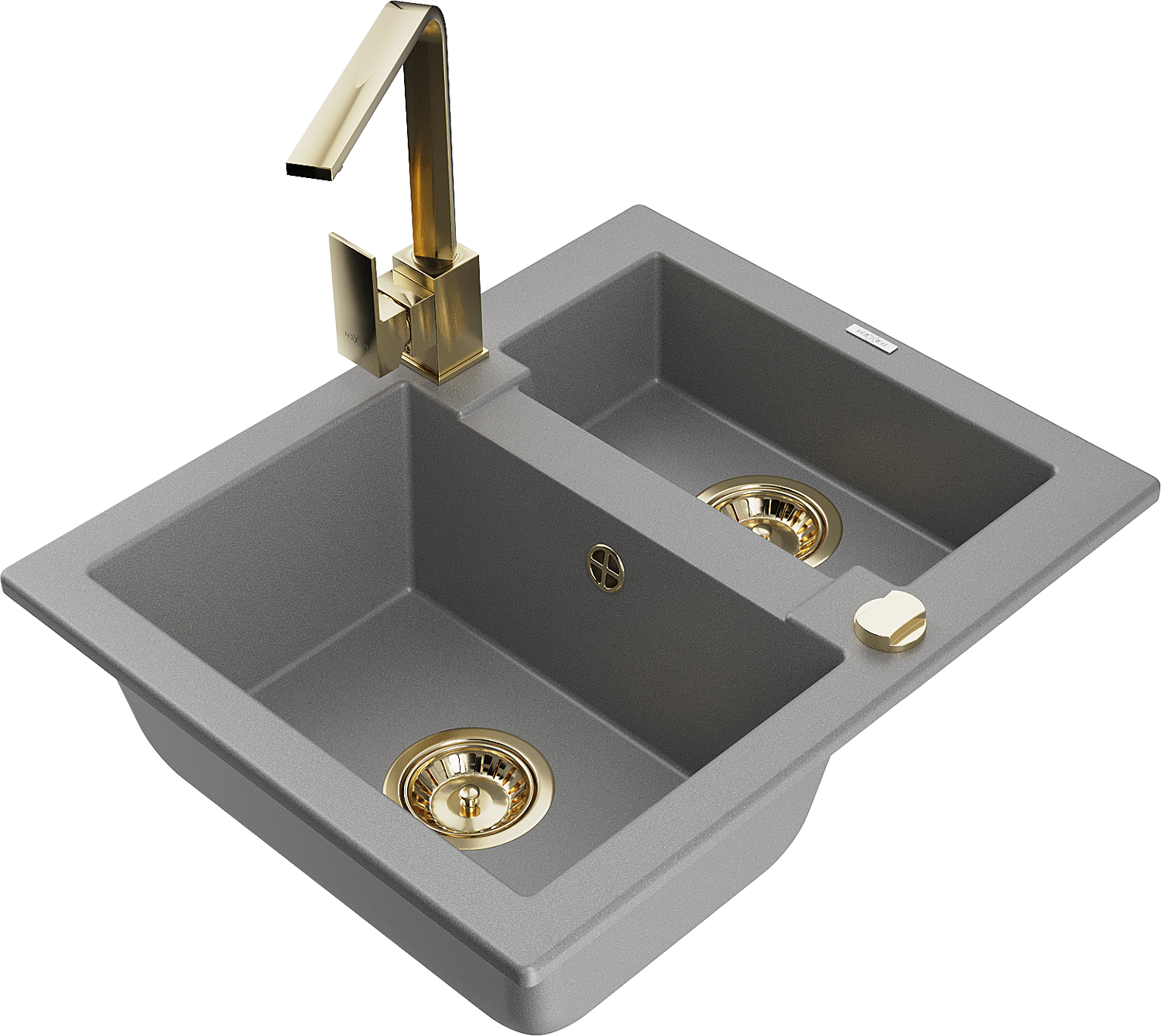 Mexen Carlos zlewozmywak granitowy 1,5-komorowy z baterią kuchenną Rita, szary - 6518-71-670300-50