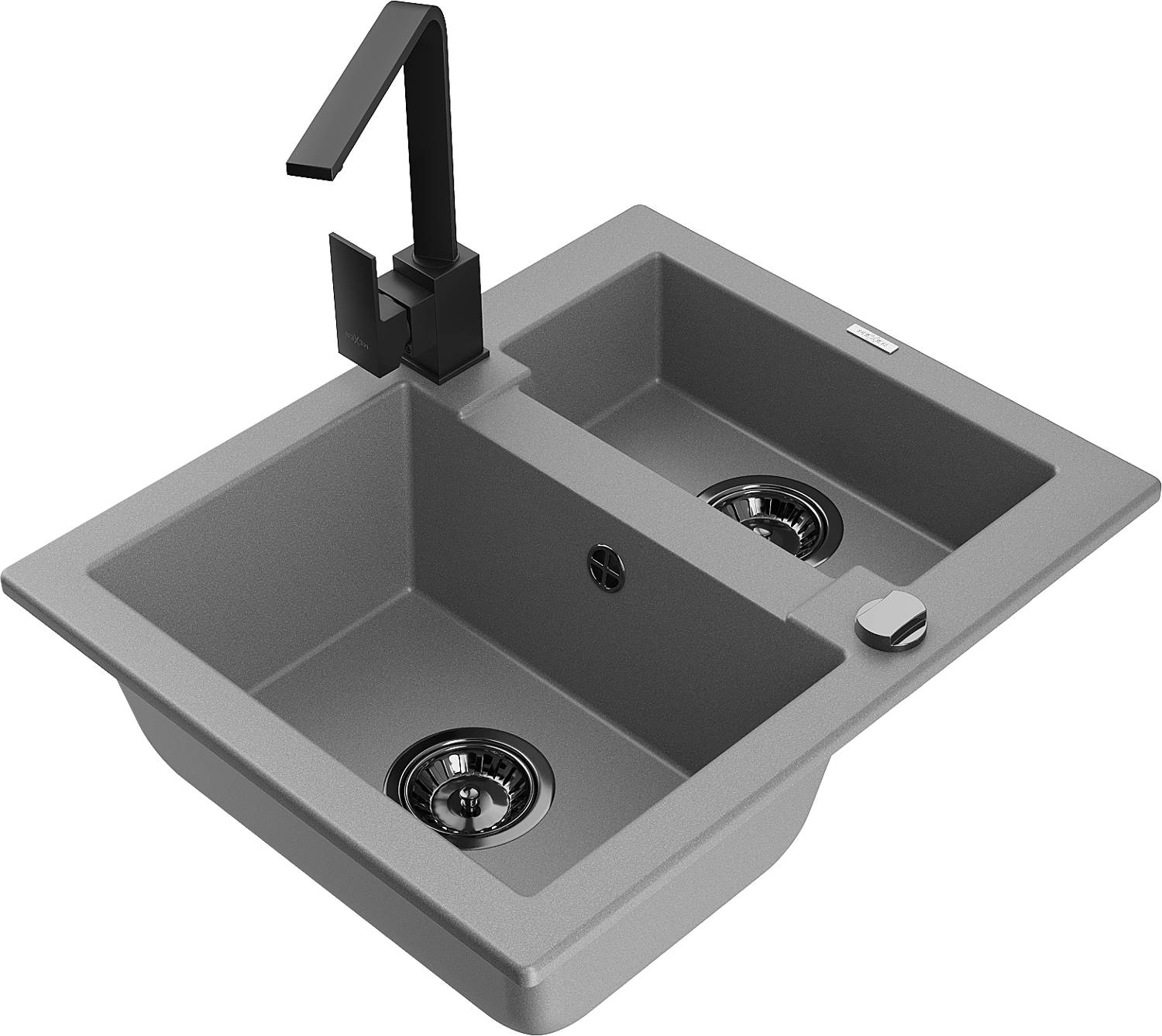 Mexen Carlos zlewozmywak granitowy 1,5-komorowy z baterią kuchenną Rita, szary - 6518-71-670300-70-B