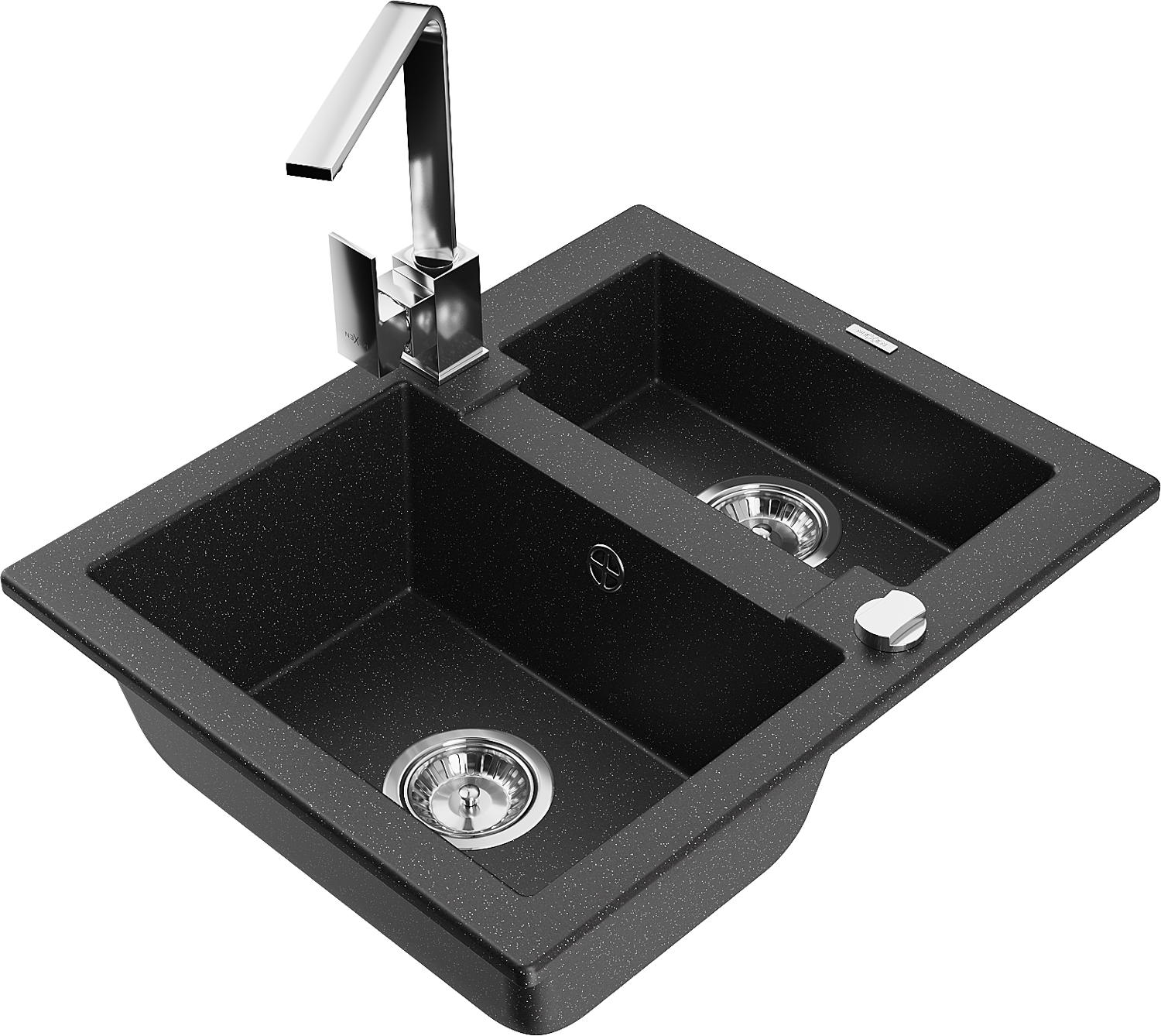Mexen Carlos zlewozmywak granitowy 1,5-komorowy z baterią kuchenną Rita, czarny/srebrny metalik - 6518-73-670300-00