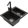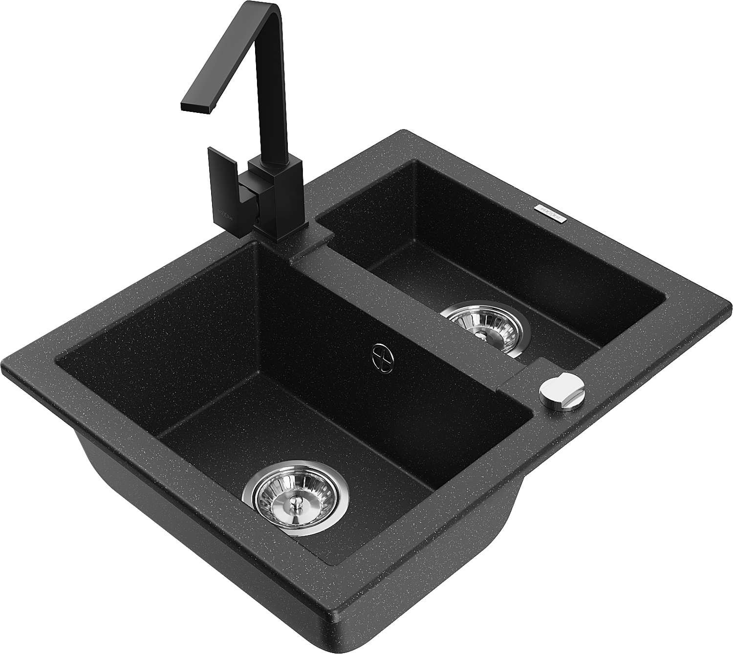 Mexen Carlos zlewozmywak granitowy 1,5-komorowy z baterią kuchenną Rita, czarny/srebrny metalik - 6518-73-670300-70
