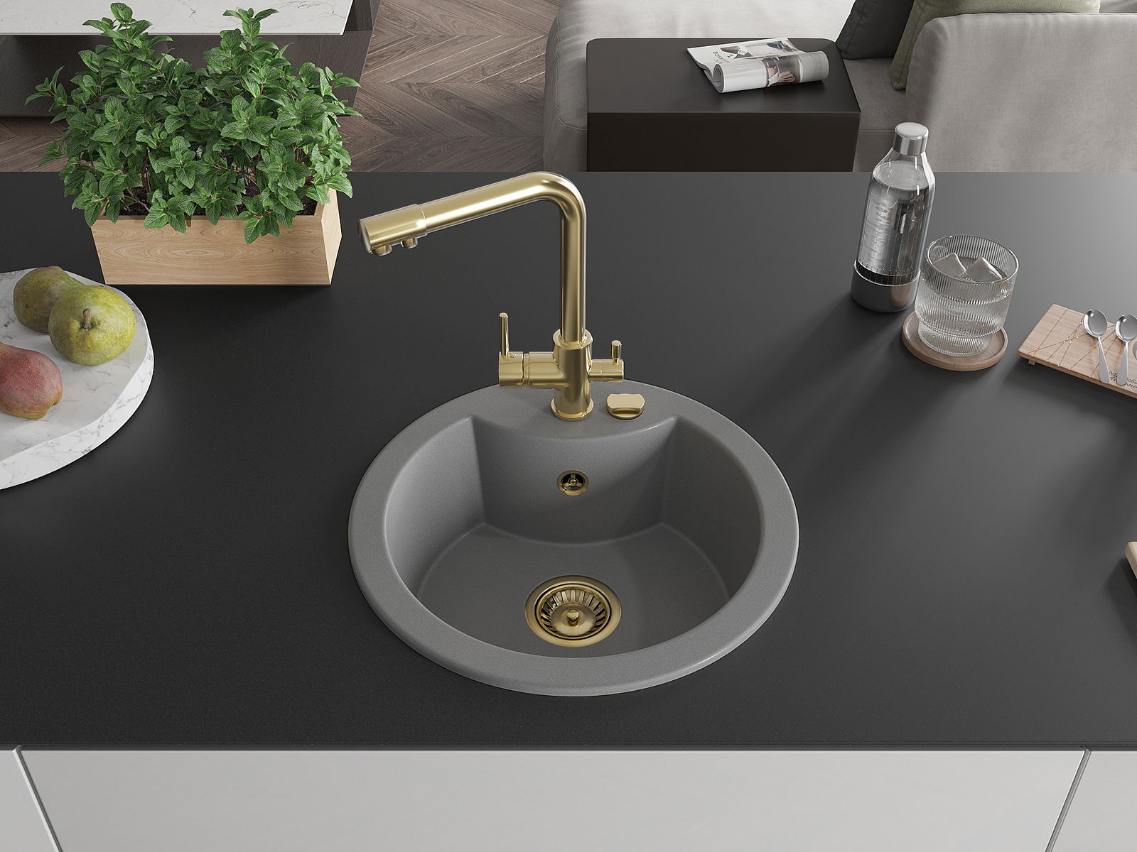 Zlewozmywak został wykonany z wysokiej jakości granitu. Stanowi eleganckie, a przede wszystkim praktyczne uzupełnienie każdej kuchni, niezależnie od jej stylu. Wysoka jakość oraz trwałość granitu zapewniają wieloletnie użytkowanie.