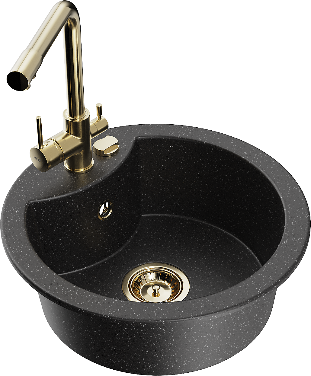 Mexen Diego zlewozmywak granitowy 1-komorowy z baterią kuchenną Duero, czarny/srebrny metalik - 6512-73-671600-50