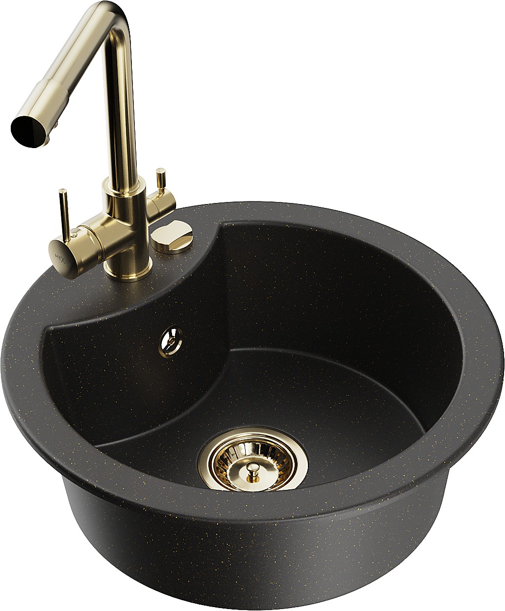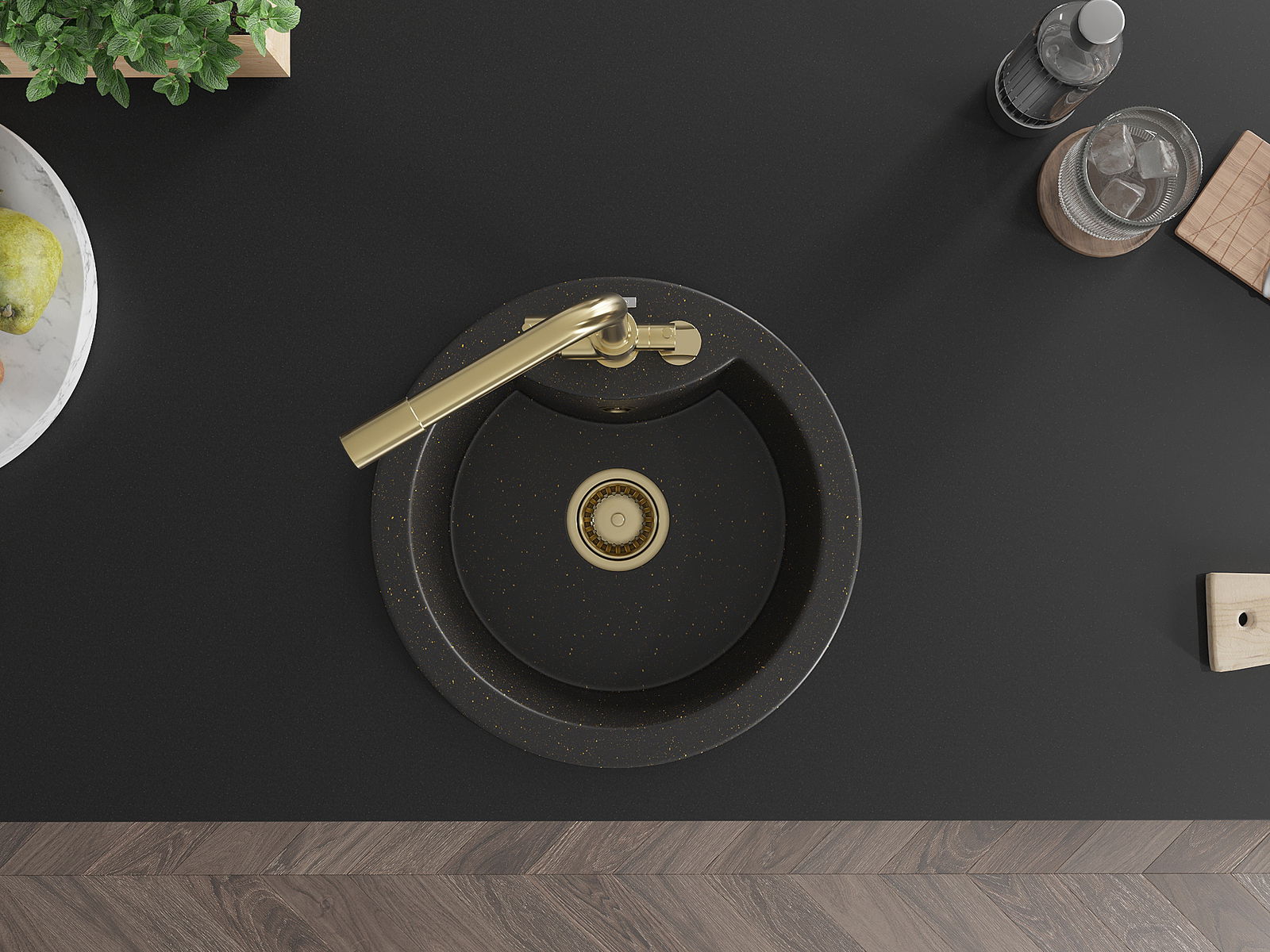 Mexen Diego zlewozmywak granitowy 1-komorowy z baterią kuchenną Duero, czarny/złoty metalik - 6512-75-671600-50