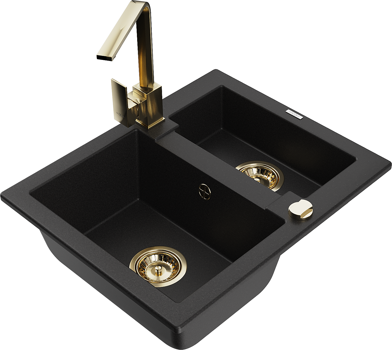 Mexen Carlos zlewozmywak granitowy 1,5-komorowy z baterią kuchenną Rita, czarny - 6518-77-670300-50