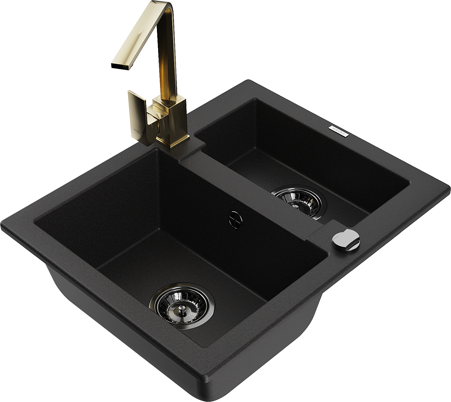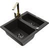 Mexen Carlos zlewozmywak granitowy 1,5-komorowy z baterią kuchenną Rita, czarny - 6518-77-670300-50-B