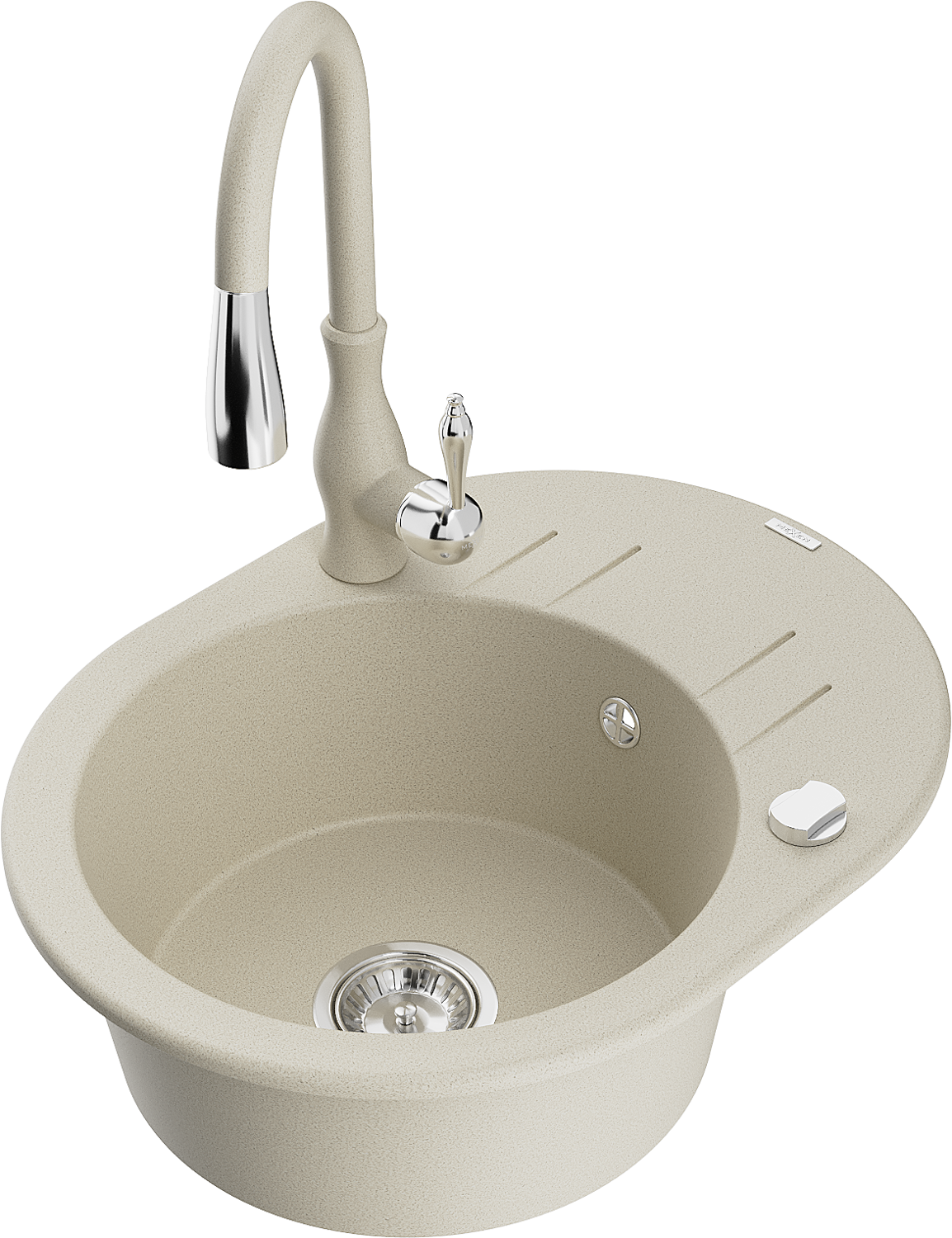 Mexen Kevin zlewozmywak granitowy 1-komorowy z ociekaczem i baterią kuchenną Savita, beżowy - 6517-69-672601-69