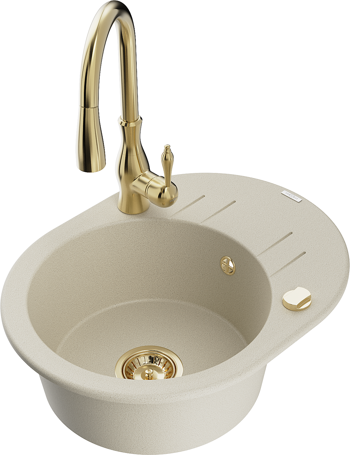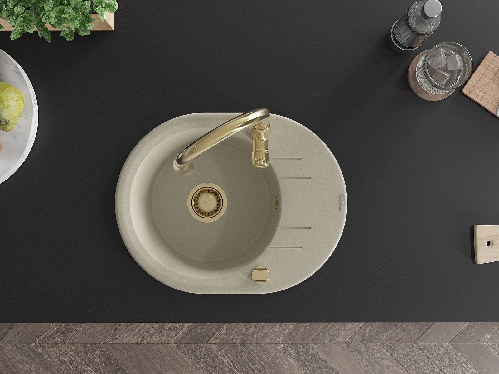 Mexen Kevin zlewozmywak granitowy 1-komorowy z ociekaczem i baterią kuchenną Savita, beżowy - 6517-69-672601-50
