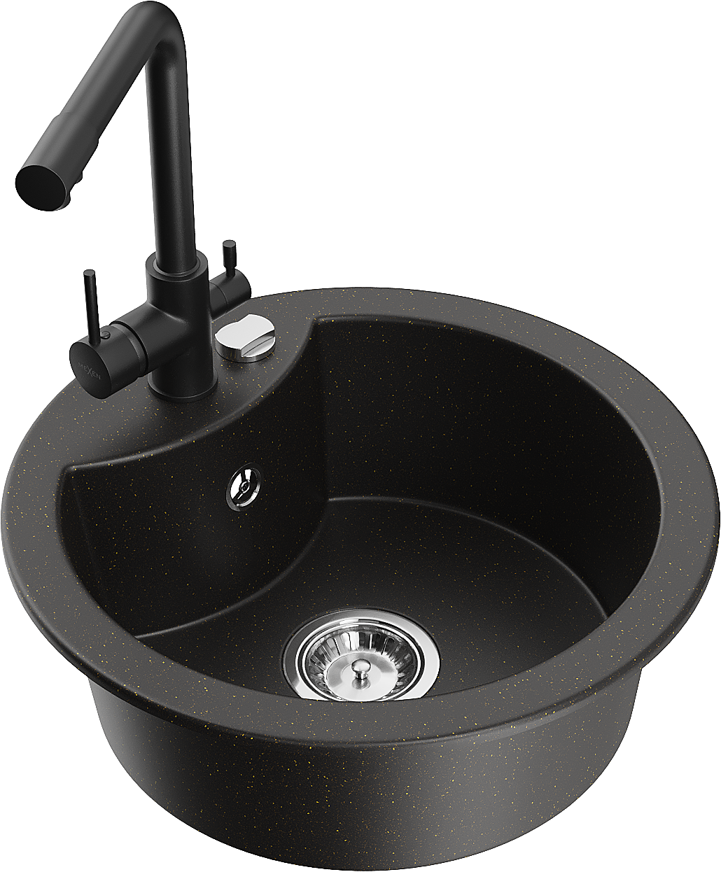 Mexen Diego zlewozmywak granitowy 1-komorowy z baterią kuchenną Duero, czarny/złoty metalik - 6512-75-671600-70