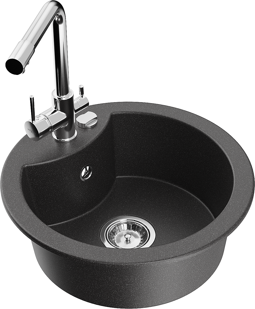 Mexen Diego zlewozmywak granitowy 1-komorowy z baterią kuchenną Duero, czarny nakrapiany - 6512-76-671600-00