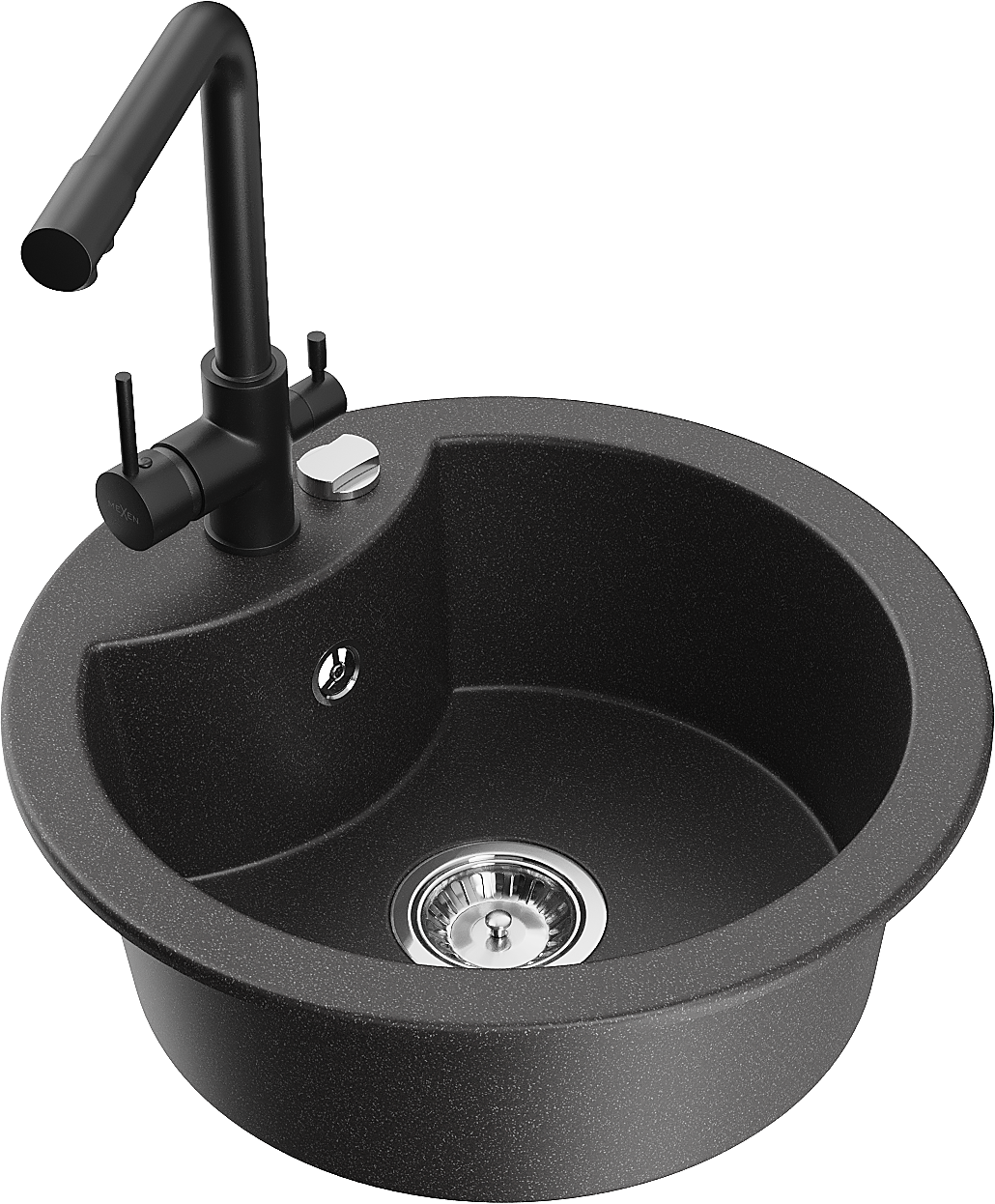 Mexen Diego zlewozmywak granitowy 1-komorowy z baterią kuchenną Duero, czarny nakrapiany - 6512-76-671600-70