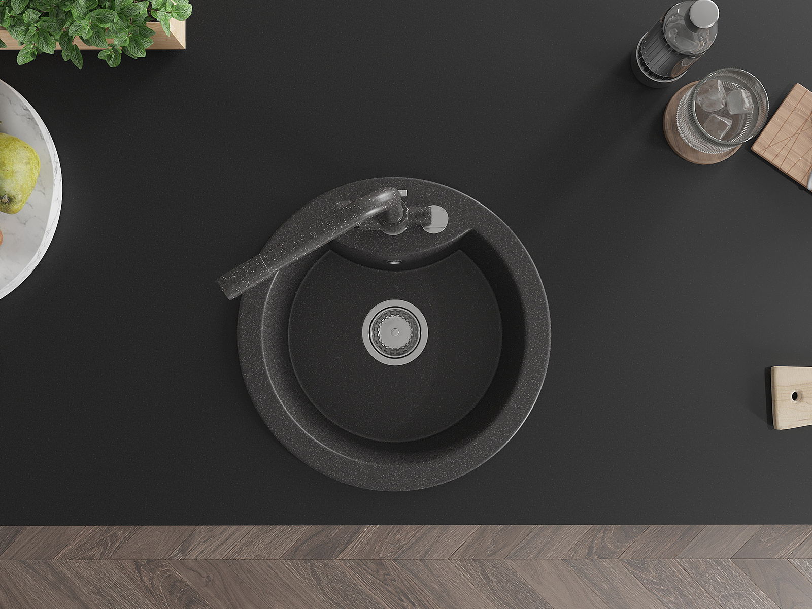 Zlewozmywak został wykonany z wysokiej jakości granitu. Stanowi eleganckie, a przede wszystkim praktyczne uzupełnienie każdej kuchni, niezależnie od jej stylu. Wysoka jakość oraz trwałość granitu zapewniają wieloletnie użytkowanie.