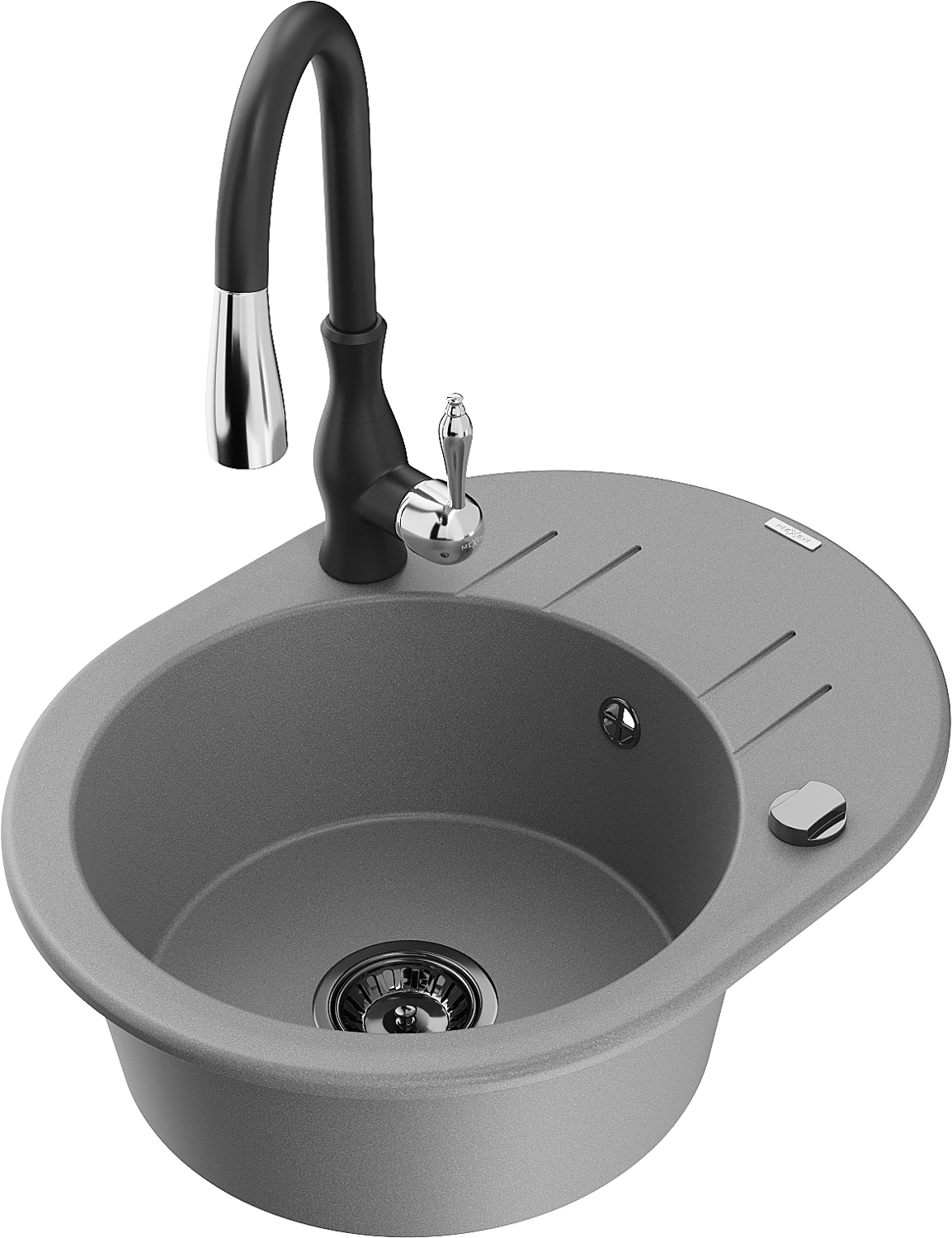 Mexen Kevin zlewozmywak granitowy 1-komorowy z ociekaczem i baterią kuchenną Savita, szary - 6517-71-672601-70-B