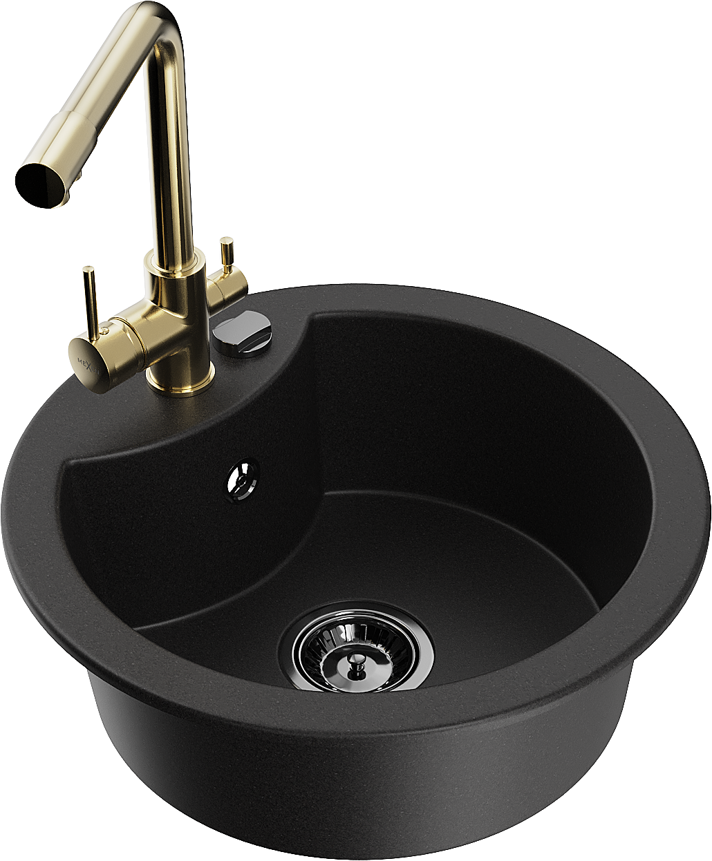 Mexen Diego zlewozmywak granitowy 1-komorowy z baterią kuchenną Duero, czarny - 6512-77-671600-50-B