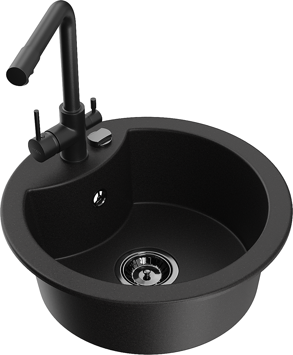 Mexen Diego zlewozmywak granitowy 1-komorowy z baterią kuchenną Duero, czarny - 6512-77-671600-70-B