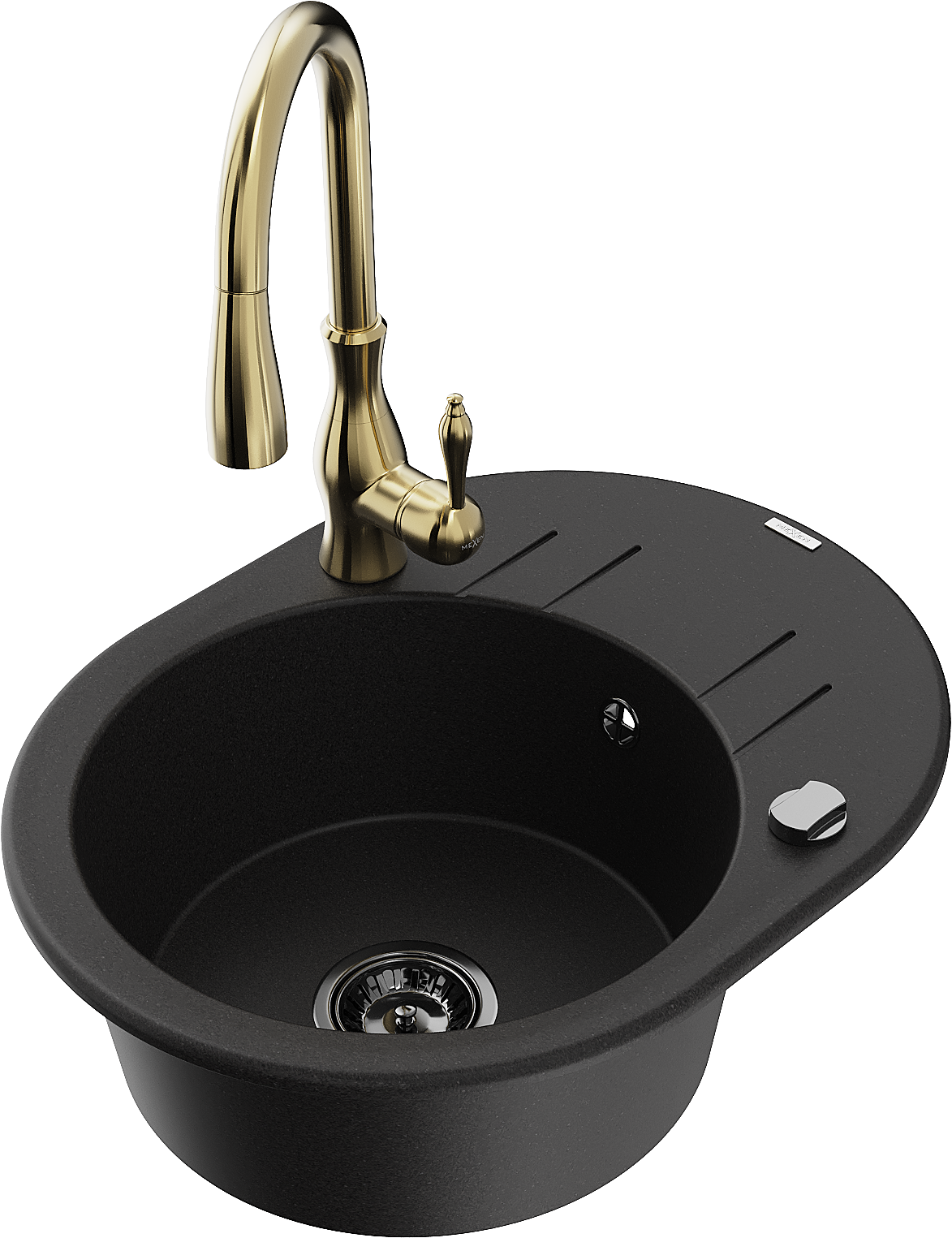Mexen Kevin zlewozmywak granitowy 1-komorowy z ociekaczem i baterią kuchenną Savita, czarny - 6517-77-672601-50-B