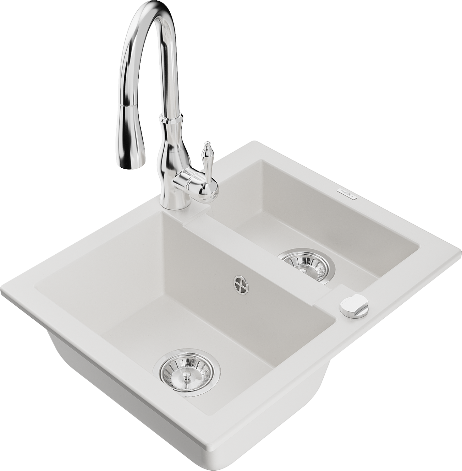 Mexen Carlos zlewozmywak granitowy 1,5-komorowy z baterią kuchenną Savita, biały - 6518-20-672601-00