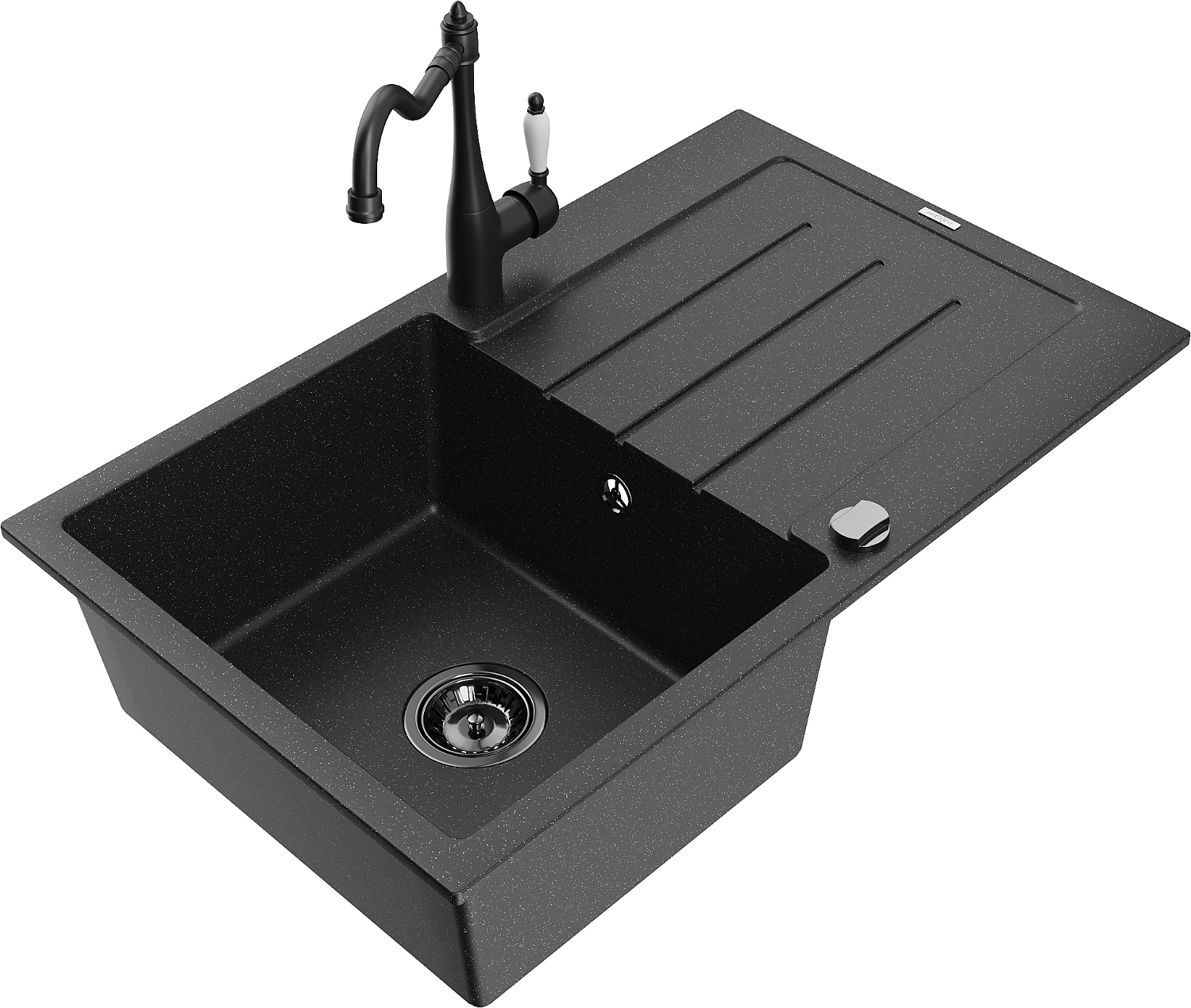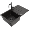 Mexen Bruno zlewozmywak granitowy 1-komorowy z ociekaczem i baterią kuchenną Carla, czarny/srebrny metalik - 6513-73-670700-70-B