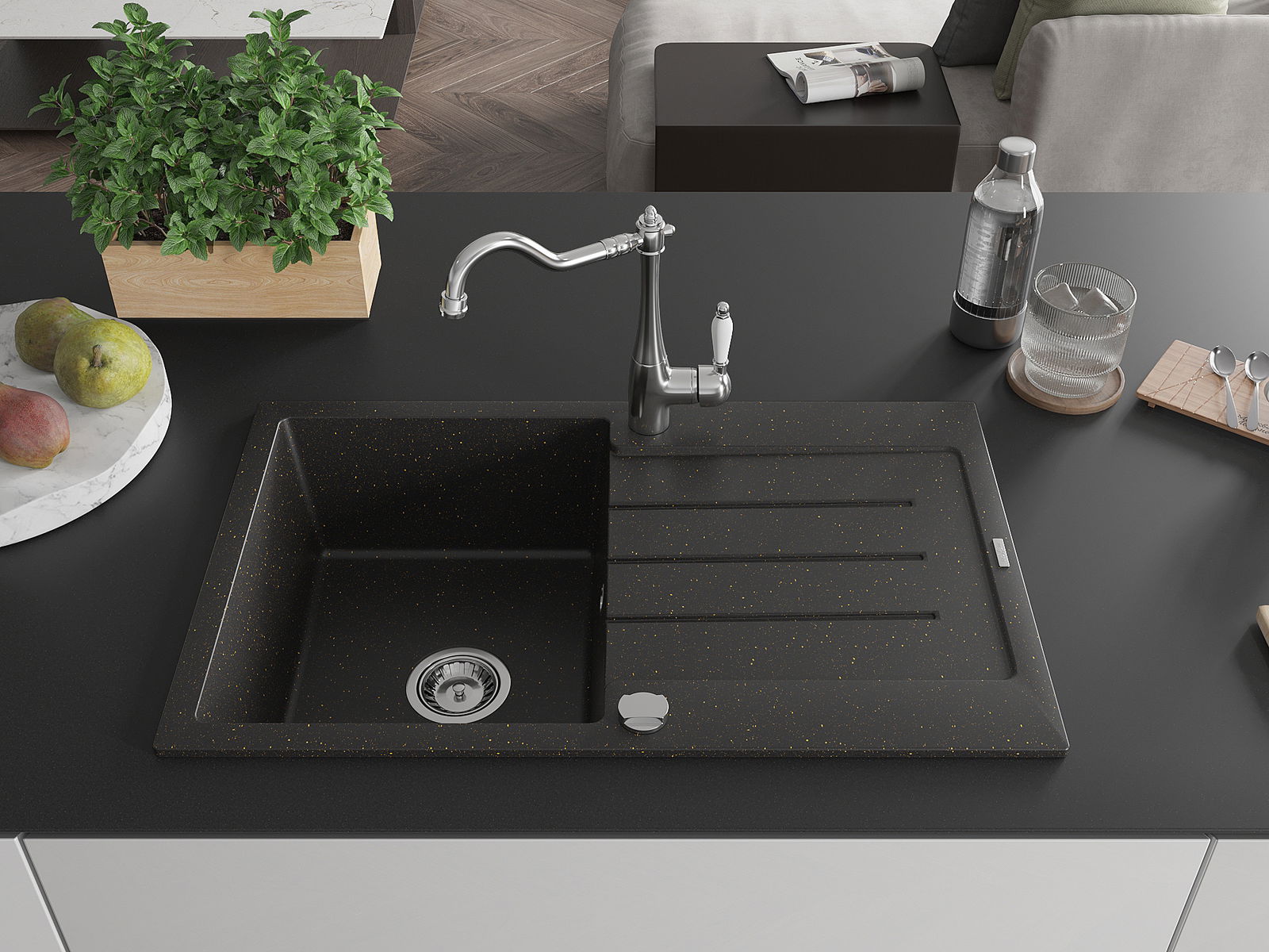 Dobrze zabezpieczona powierzchnia zlewozmywaka hamuje wnikanie zabrudzeń do jego wewnętrznych struktur. Dzięki temu utrzymanie zlewu w czystości jest jeszcze łatwiejsze, a jego powierzchnia zachowuje swoją estetykę na dłużej.