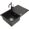 Mexen Bruno zlewozmywak granitowy 1-komorowy z ociekaczem i baterią kuchenną Carla, czarny nakrapiany - 6513-76-670700-70