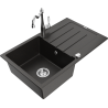 Mexen Bruno zlewozmywak granitowy 1-komorowy z ociekaczem i baterią kuchenną Carla, czarny nakrapiany - 6513-76-670700-76
