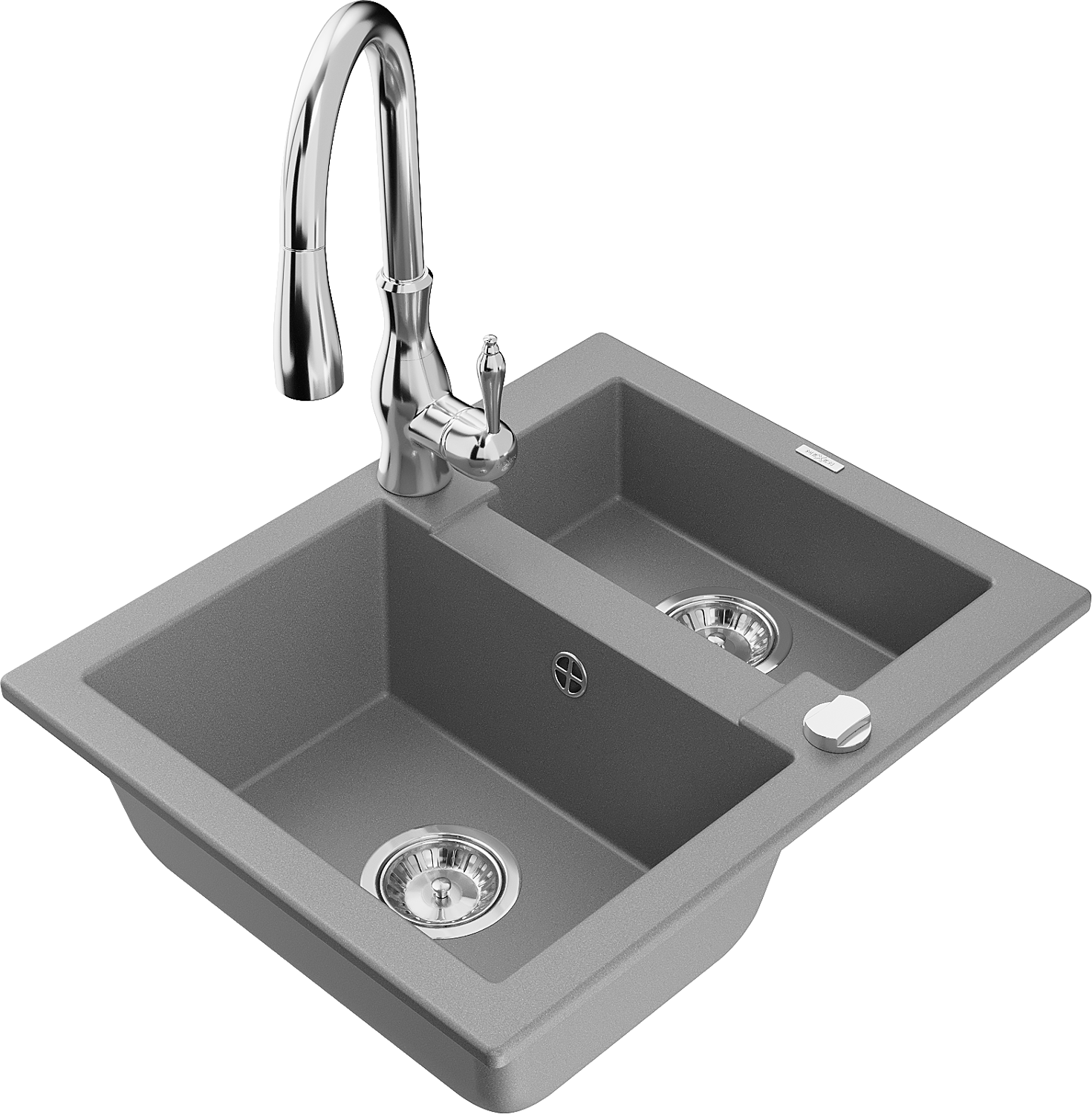 Mexen Carlos zlewozmywak granitowy 1,5-komorowy z baterią kuchenną Savita, szary - 6518-71-672601-00