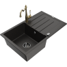 Mexen Bruno zlewozmywak granitowy 1-komorowy z ociekaczem i baterią kuchenną Carla, czarny - 6513-77-670700-50-B