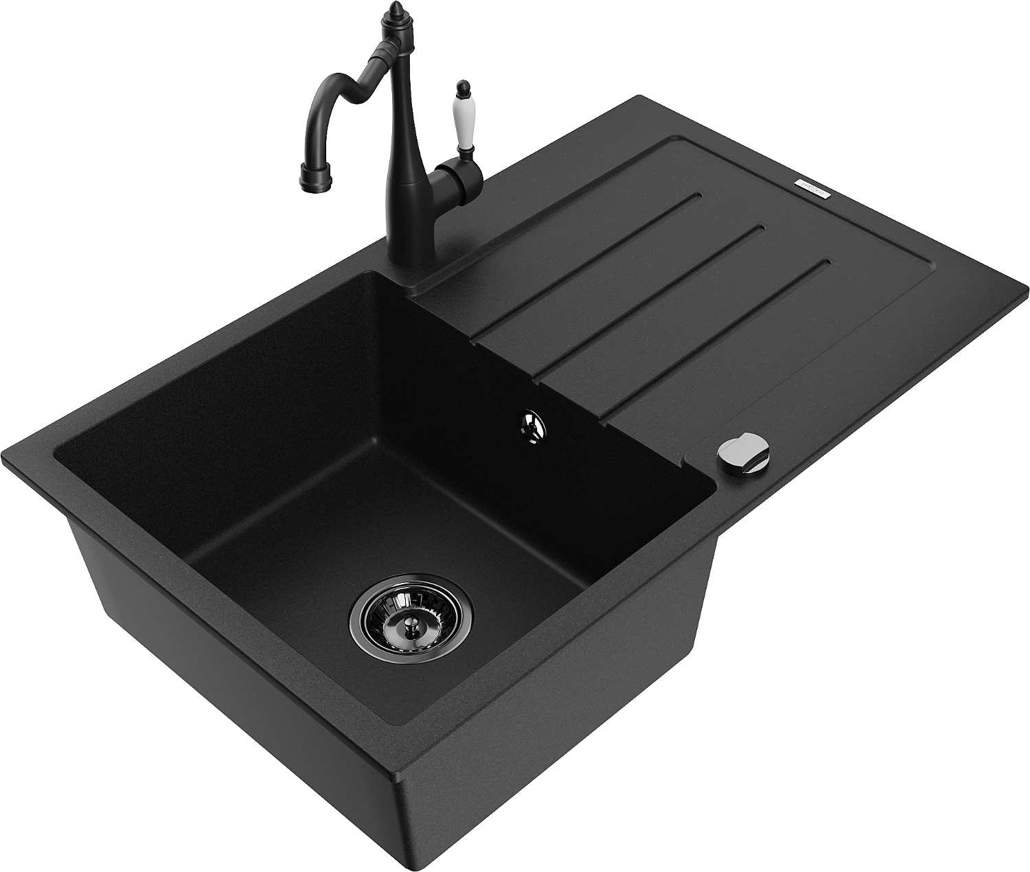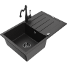 Mexen Bruno zlewozmywak granitowy 1-komorowy z ociekaczem i baterią kuchenną Carla, czarny - 6513-77-670700-70-B