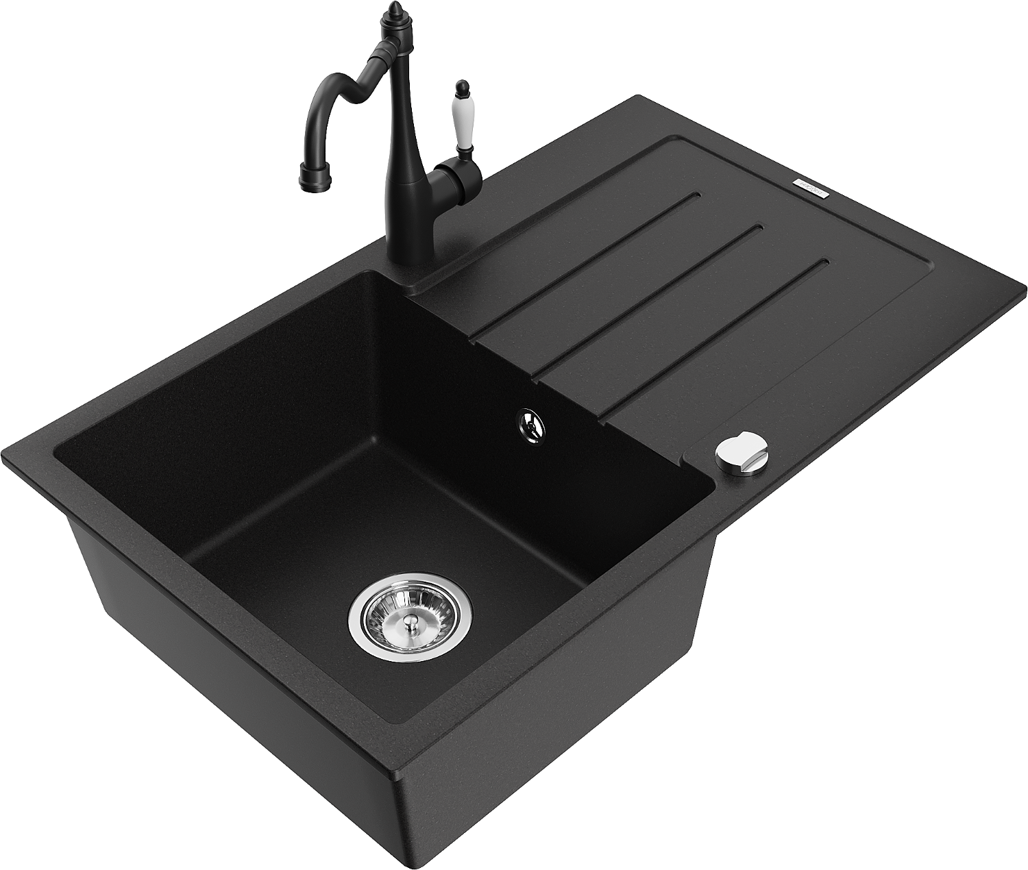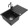 Mexen Bruno zlewozmywak granitowy 1-komorowy z ociekaczem i baterią kuchenną Carla, czarny - 6513-77-670700-70