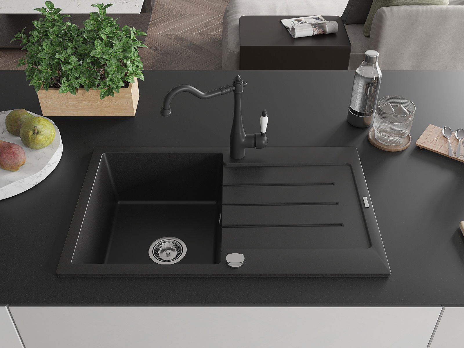 Zlewozmywak został wykonany z wysokiej jakości granitu. Stanowi eleganckie, a przede wszystkim praktyczne uzupełnienie każdej kuchni, niezależnie od jej stylu. Wysoka jakość oraz trwałość granitu zapewniają wieloletnie użytkowanie.
