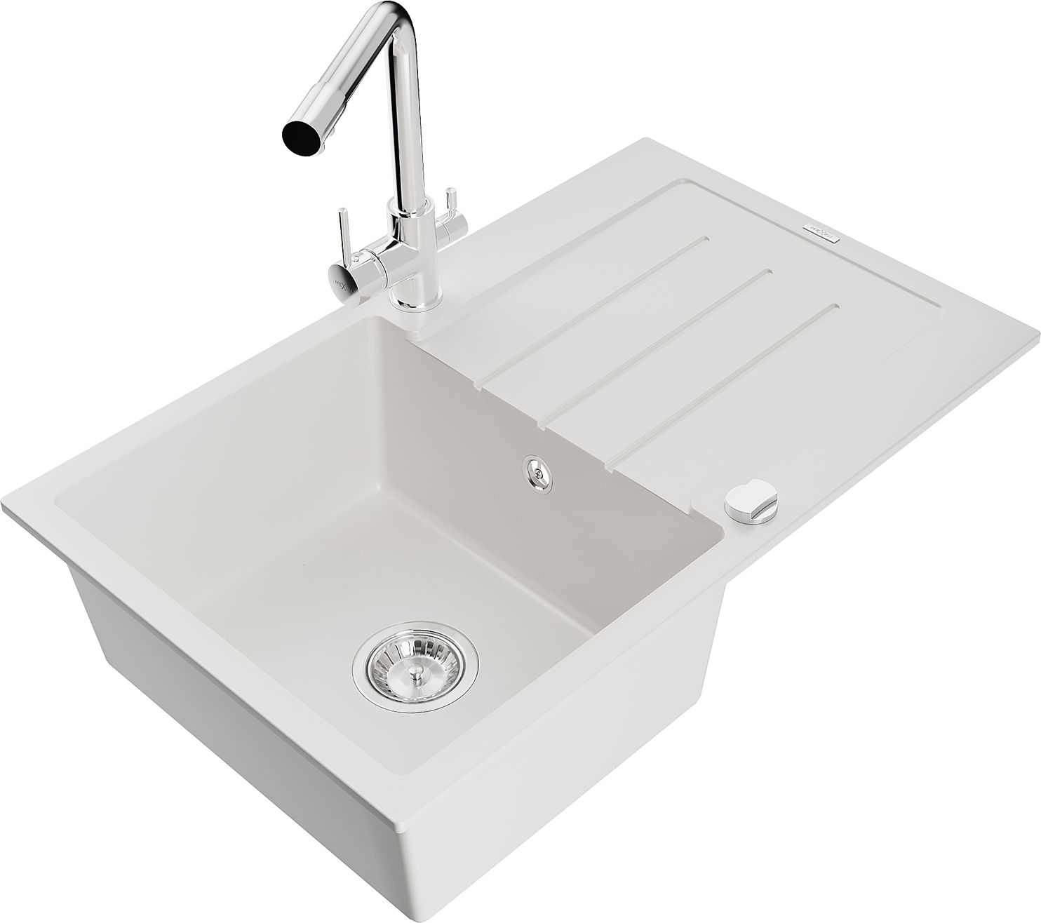 Zlewozmywak został wykonany z wysokiej jakości granitu. Stanowi eleganckie, a przede wszystkim praktyczne uzupełnienie każdej kuchni, niezależnie od jej stylu. Wysoka jakość oraz trwałość granitu zapewniają wieloletnie użytkowanie.
