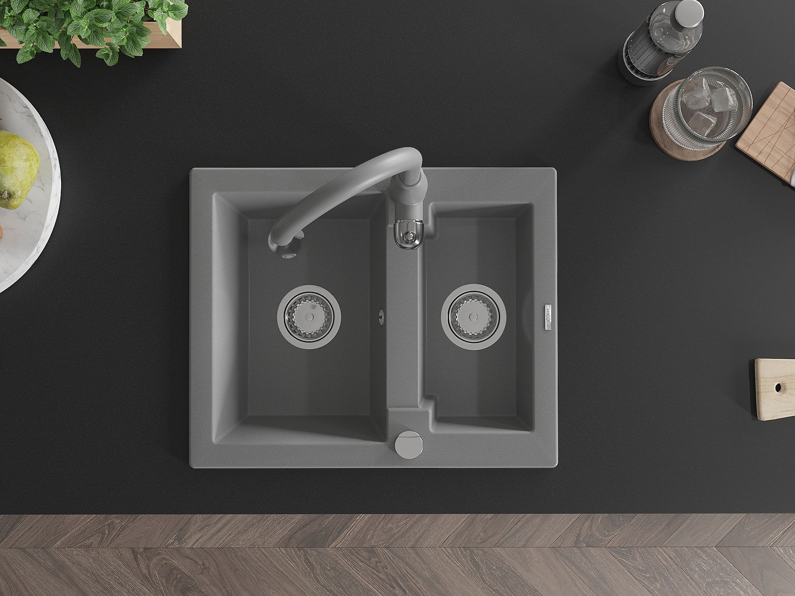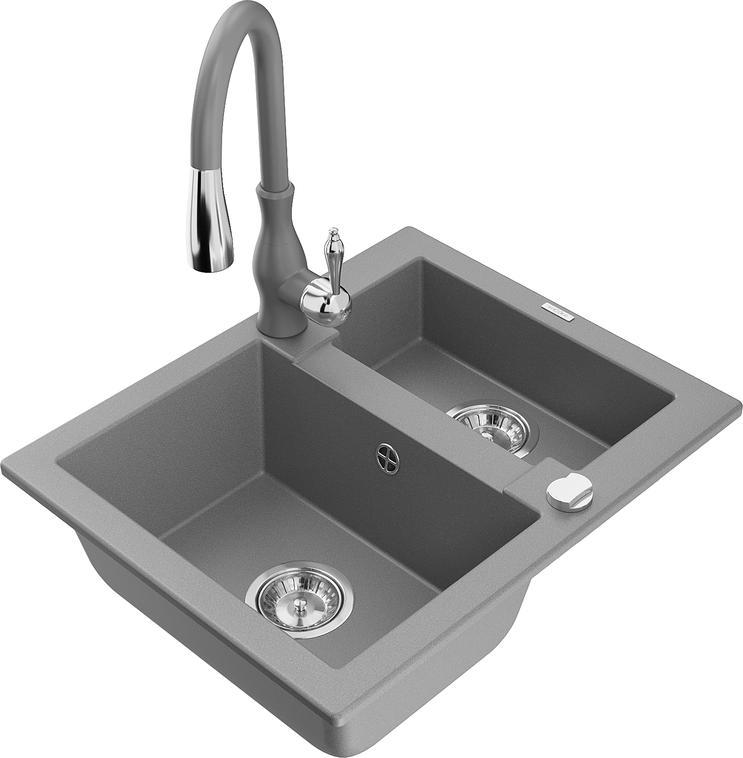 Mexen Carlos zlewozmywak granitowy 1,5-komorowy z baterią kuchenną Savita, szary - 6518-71-672601-71