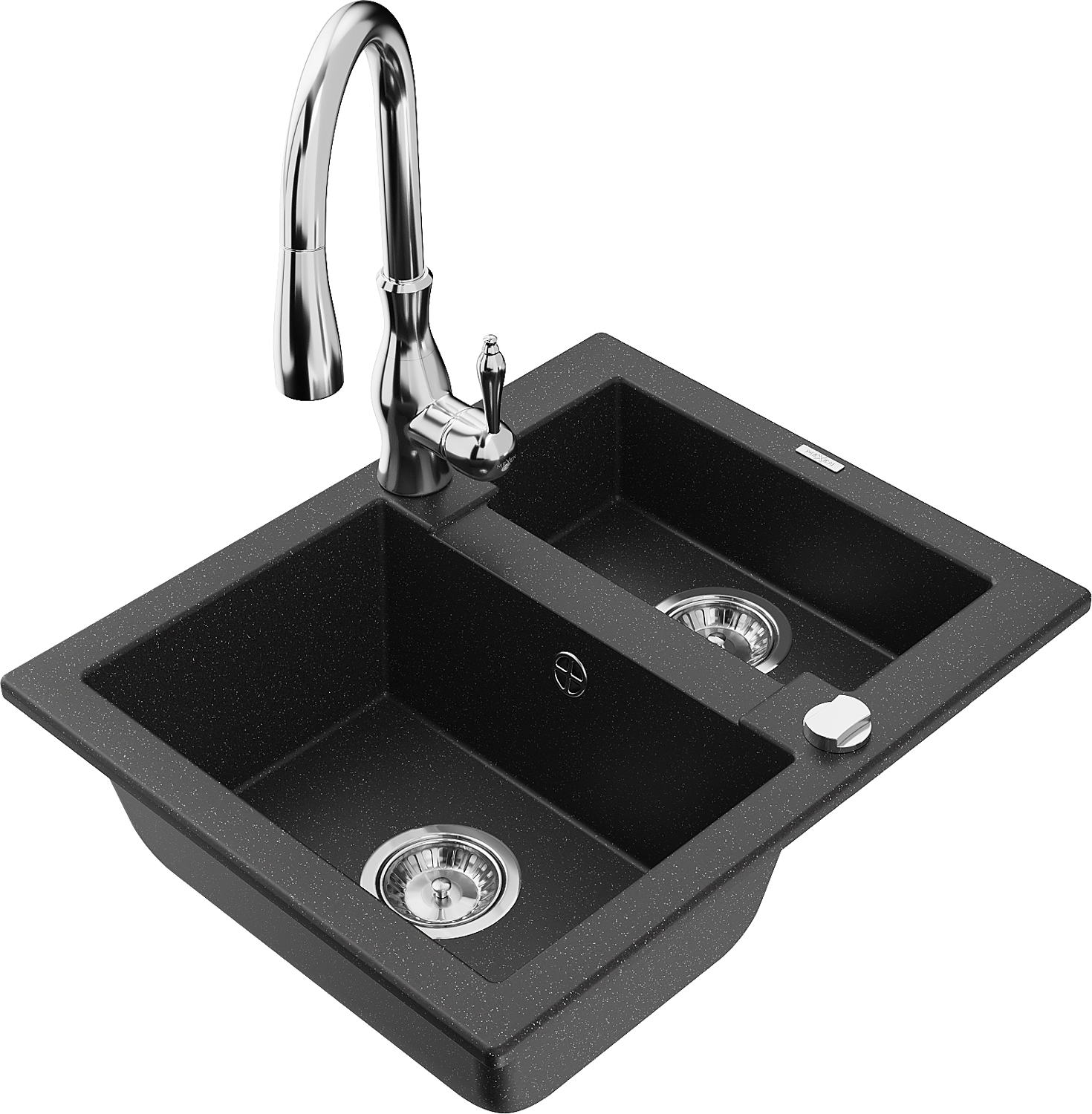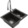 Mexen Carlos zlewozmywak granitowy 1,5-komorowy z baterią kuchenną Savita, czarny/srebrny metalik - 6518-73-672601-00